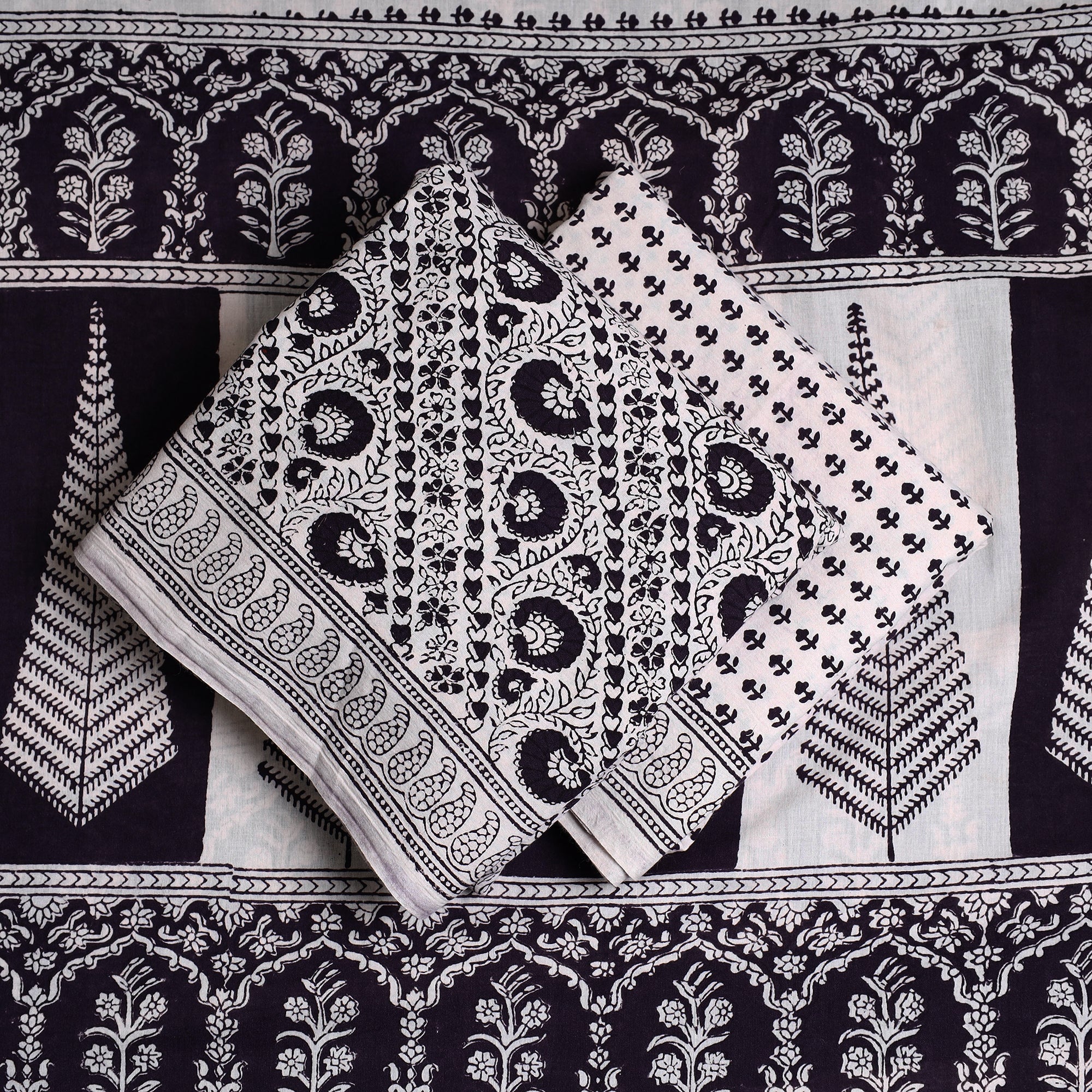 Experience the timeless artistry of hand printing with this black 3-piece cotton bagh print suit material set. Crafted with natural dyes by master artisan umar faruk khatri from Madhya Pradesh, this ensemble offers supreme comfort and eco-friendly style. Ideal for any occasion, this set includes a top, bottom, and dupatta.