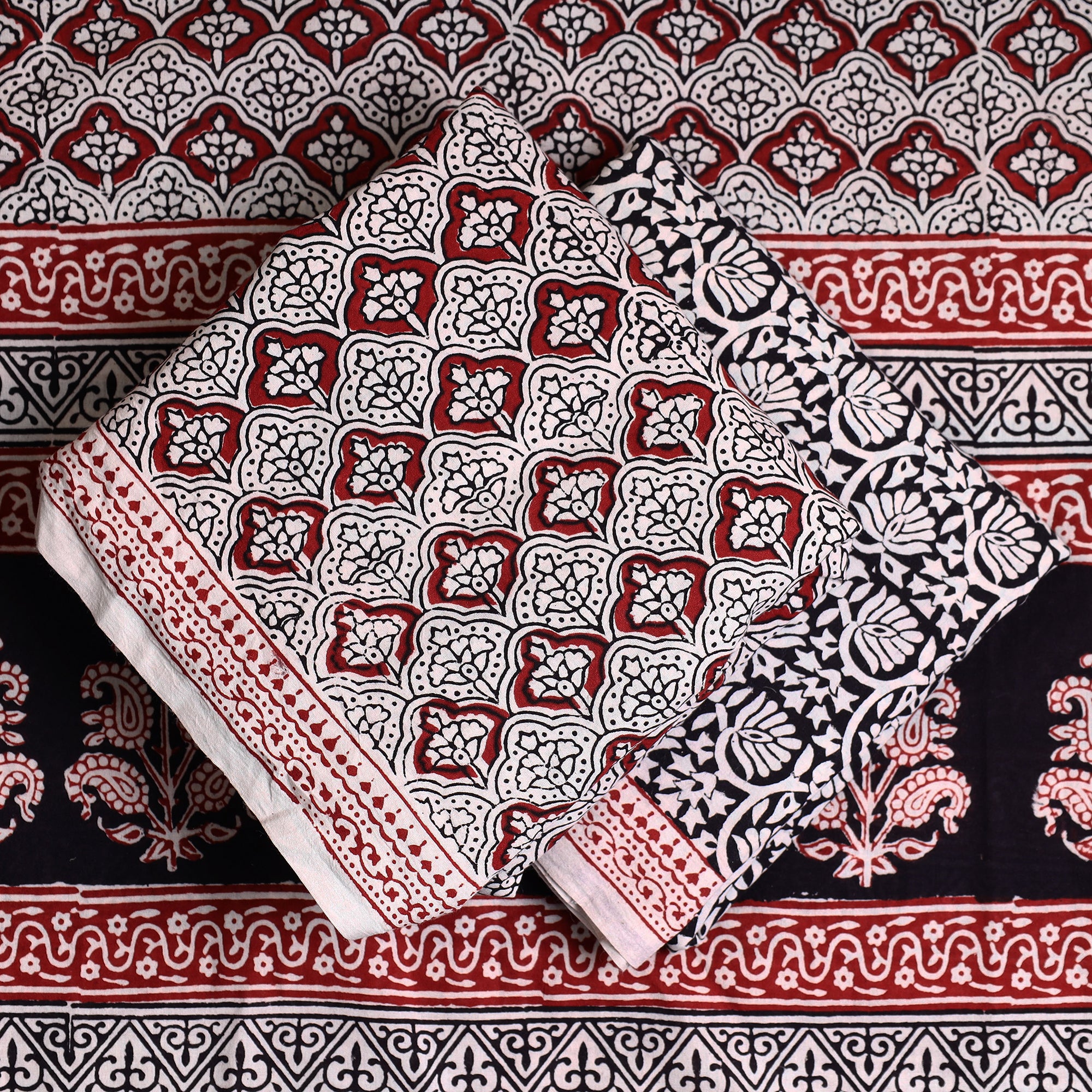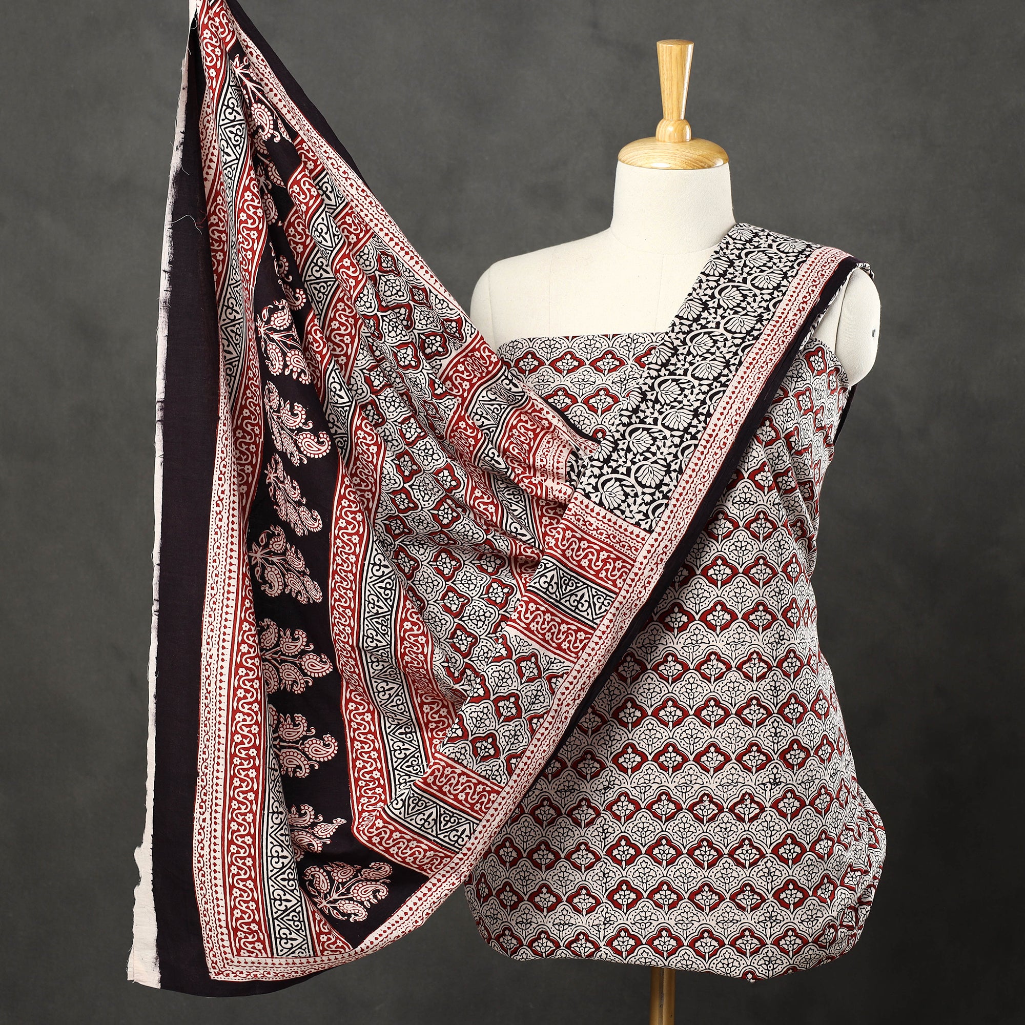 Experience the timeless artistry of hand printing with this 3-piece cotton bagh print suit material set. Crafted with natural dyes by master artisan umar faruk khatri from Madhya Pradesh, this ensemble offers supreme comfort and eco-friendly style. Ideal for any occasion, this set includes a top, bottom, and dupatta.