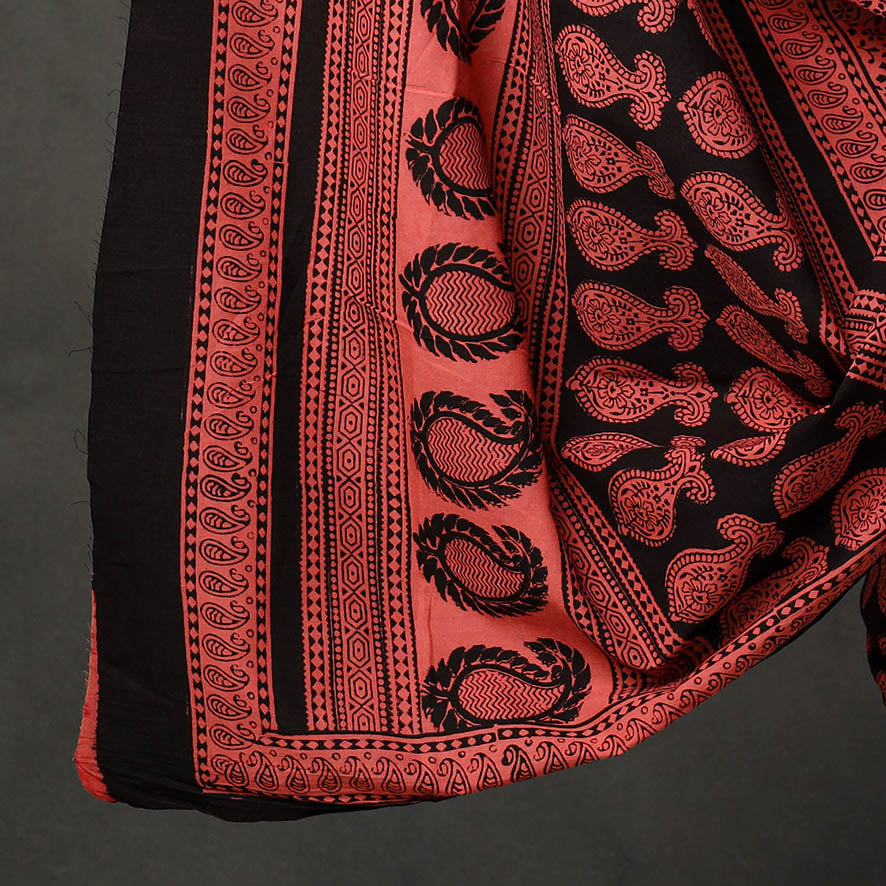 Bagh layouts are dramatic with the use of black and red alternately on a white background. Its production process is manually painstaking. Though the techniques and designs are age-old the prints retain their contemporary appeal.