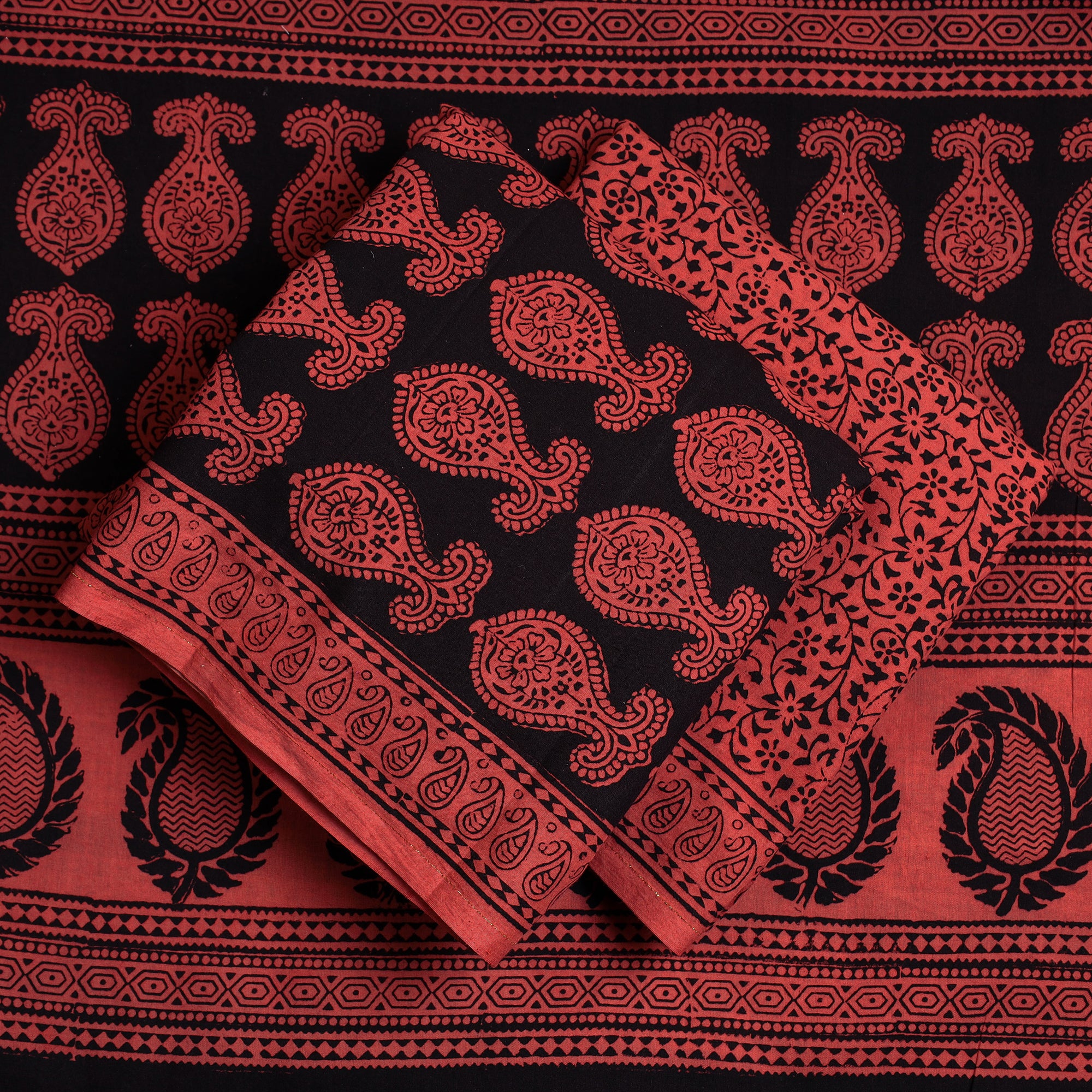 Black - Natural Dyed Cotton Hand Block Bagh Print Fabric 17