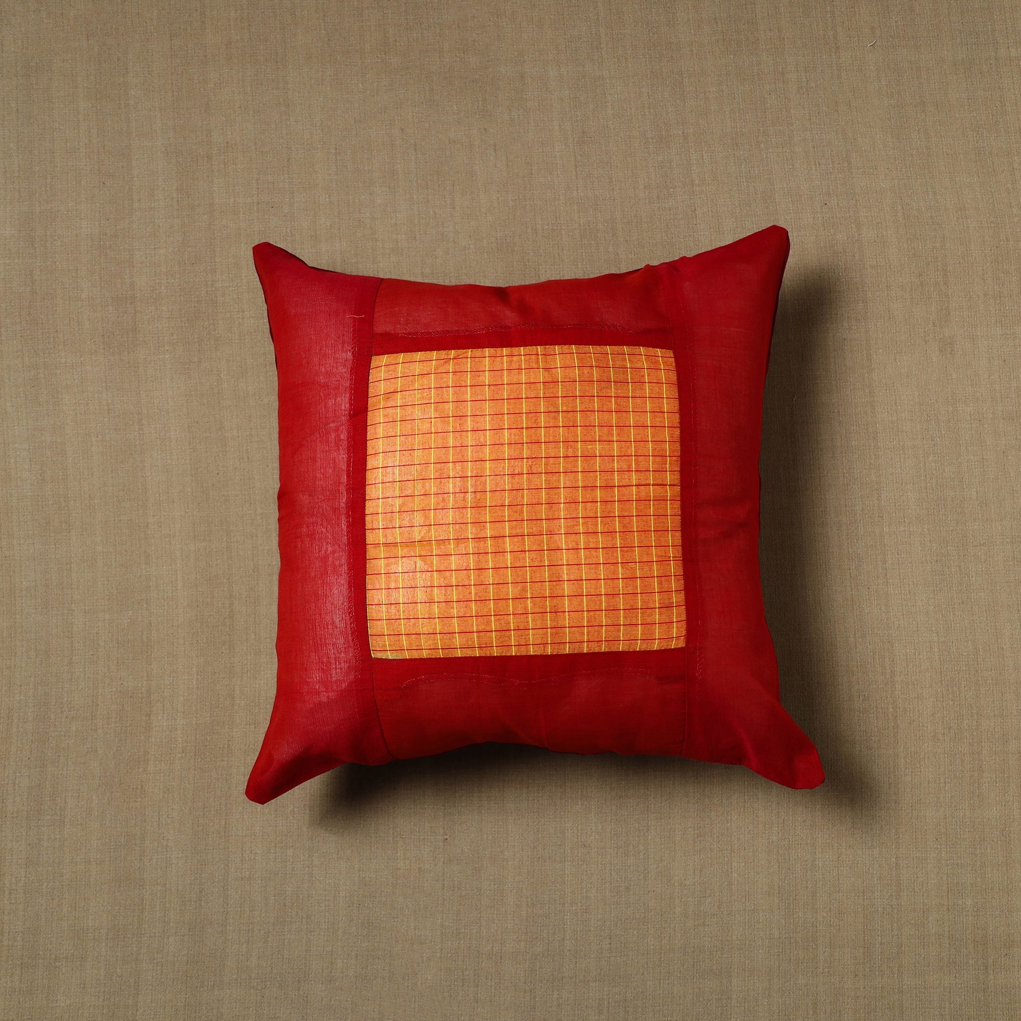 These exquisite red kanchipuram cushion cover handcrafted from cotton each cover features patchwork that reflects the rich cultural heritage of kanchipuram. Perfect for adding a touch of elegance and charm to any room, this cushion cover blends durability with style.