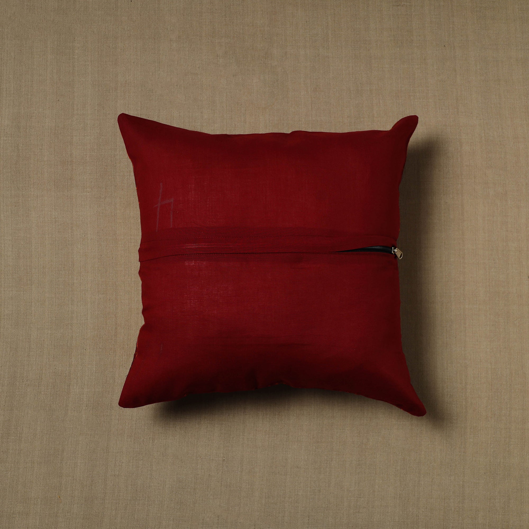 These exquisite maroon kanchipuram cushion cover handcrafted from cotton each cover features patchwork that reflects the rich cultural heritage of kanchipuram. Perfect for adding a touch of elegance and charm to any room, this cushion cover blends durability with style.