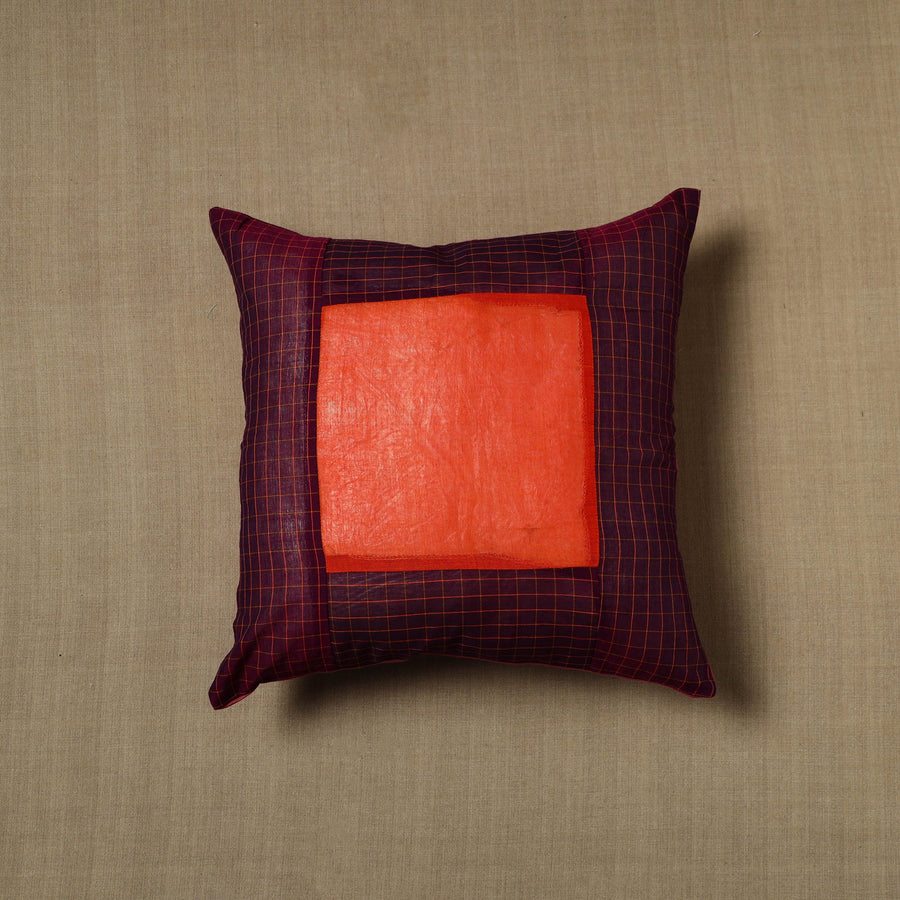 These exquisite maroon kanchipuram cushion cover handcrafted from cotton each cover features patchwork that reflects the rich cultural heritage of kanchipuram. Perfect for adding a touch of elegance and charm to any room, this cushion cover blends durability with style.