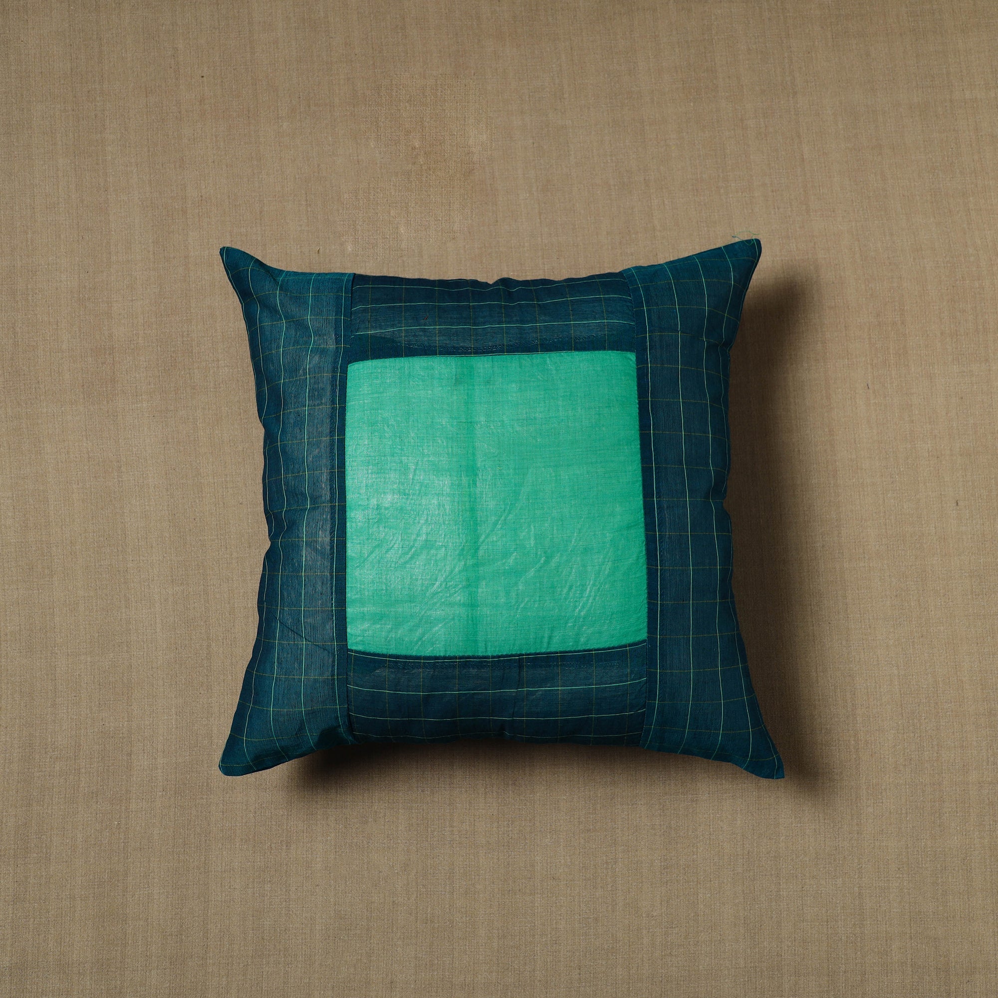 These exquisite blue kanchipuram cushion cover blue handcrafted from cotton each cover features patchwork that reflects the rich cultural heritage of kanchipuram. Perfect for adding a touch of elegance and charm to any room, this cushion cover blends durability with style.