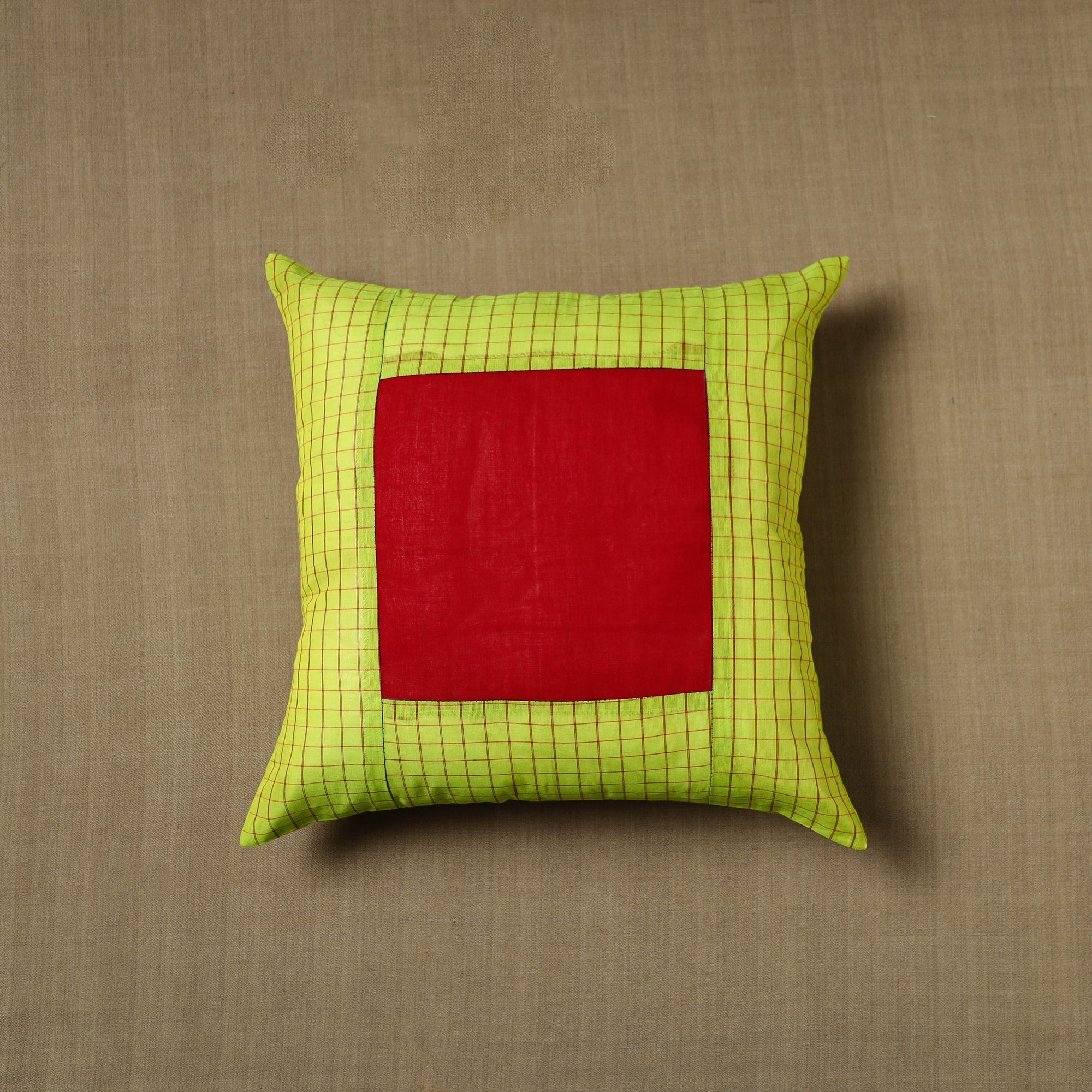These exquisite green kanchipuram cushion cover handcrafted from cotton each cover features patchwork that reflects the rich cultural heritage of kanchipuram. Perfect for adding a touch of elegance and charm to any room, this cushion cover blends durability with style.