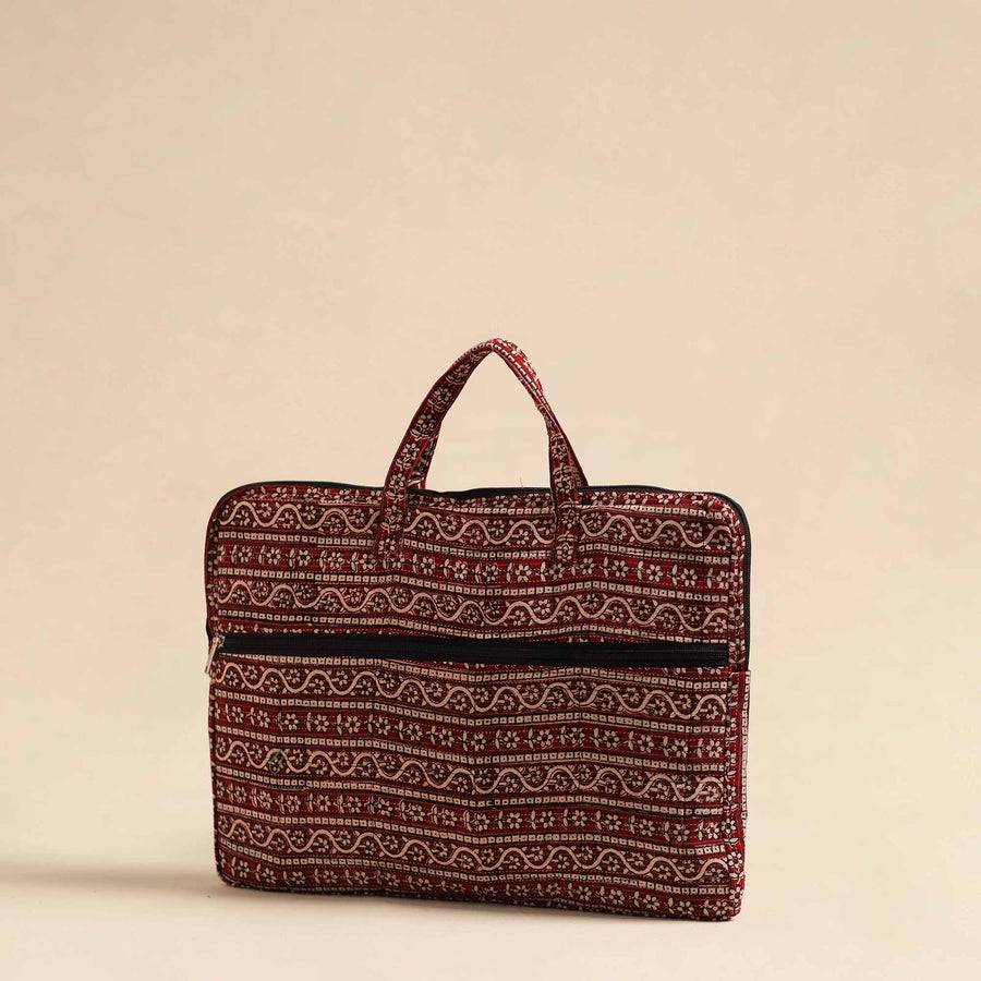 Protect and carry your laptop with style using our exquisite red handmade quilted cotton laptop bag. Crafted from durable cotton fabrics and lined with foam for added protection, this elegant bag features a dedicated laptop compartment and a convenient zipper pocket on the outside.