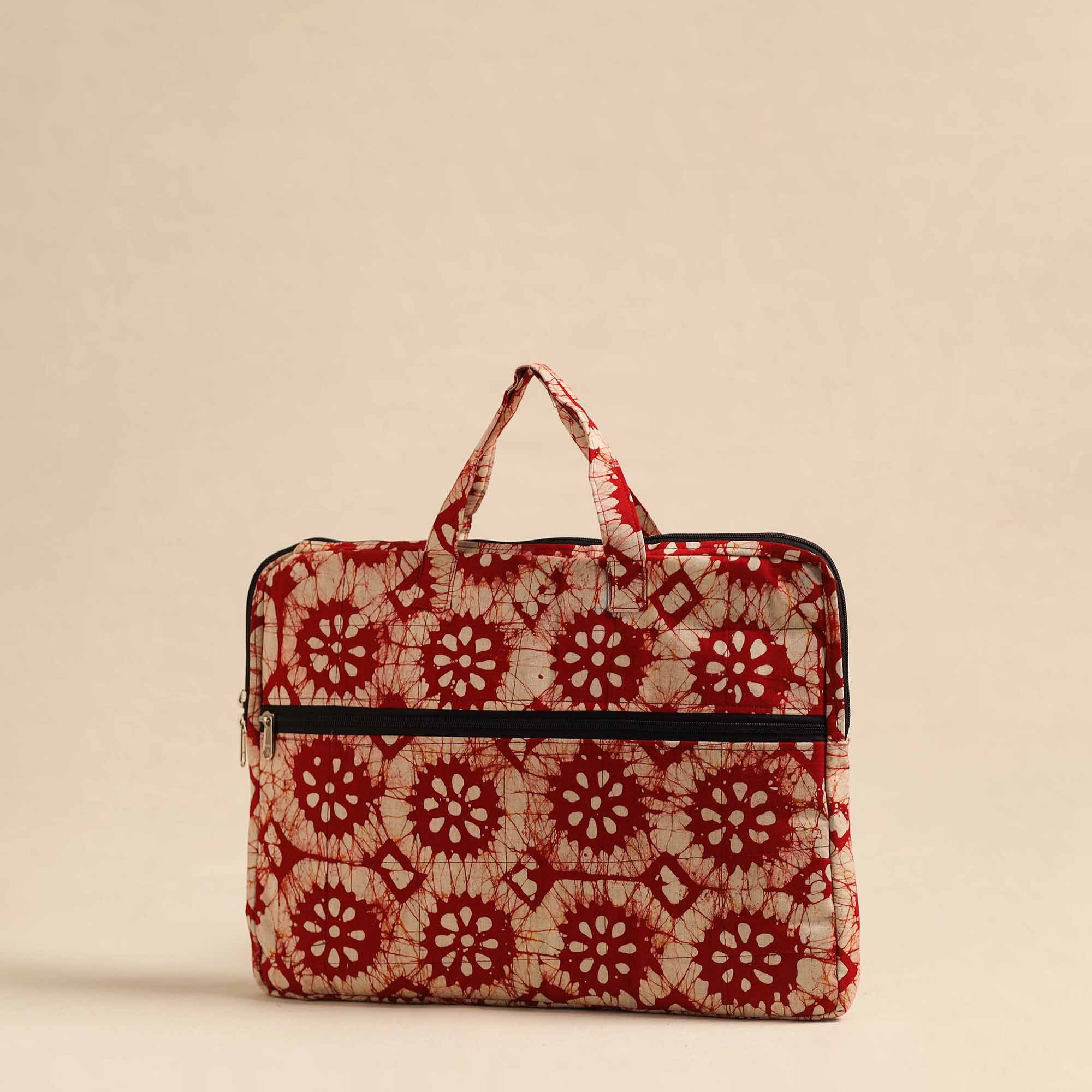 Protect and carry your laptop with style using our exquisite red handmade quilted cotton laptop bag. Crafted from durable cotton fabrics and lined with foam for added protection, this elegant bag features a dedicated laptop compartment and a convenient zipper pocket on the outside.