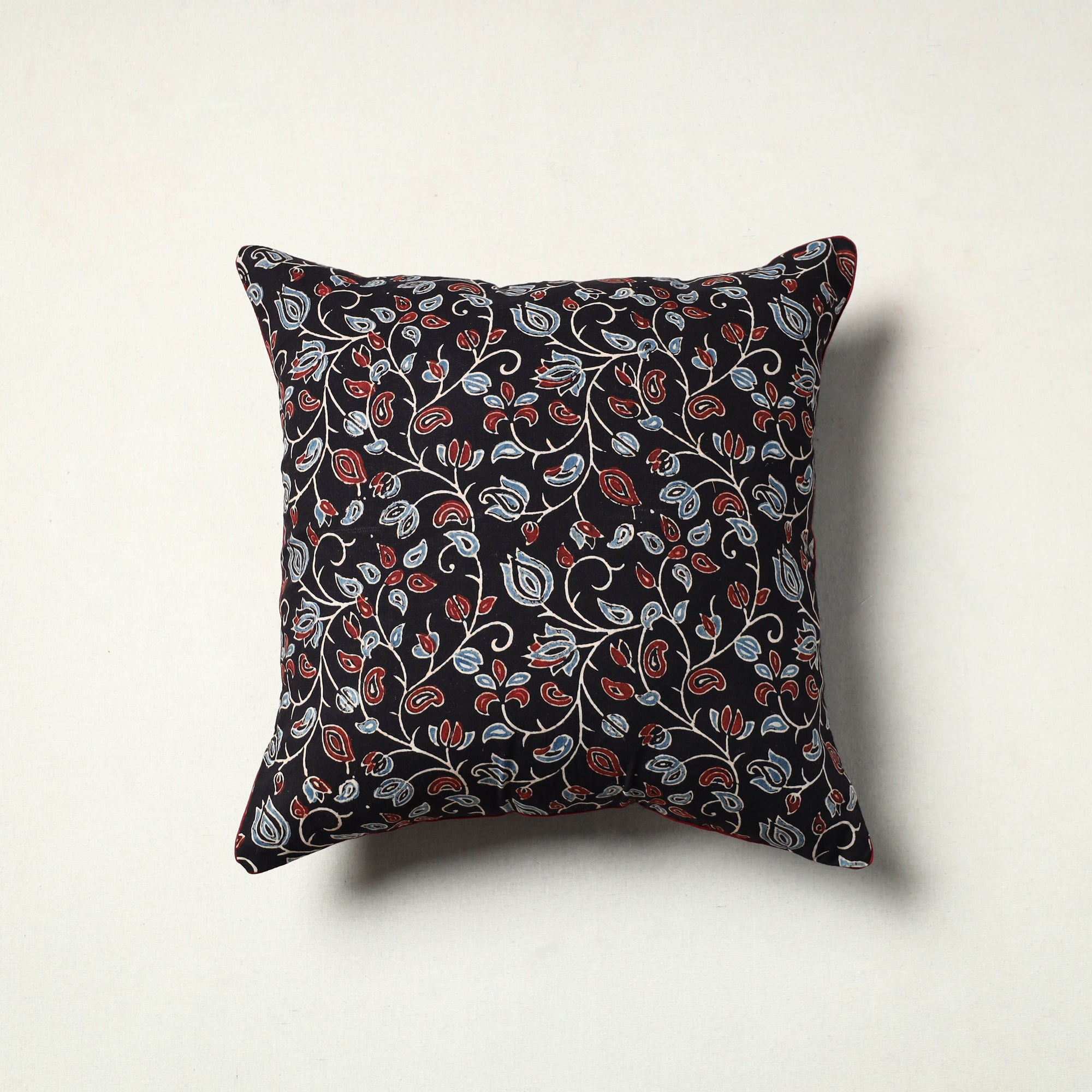 Add a touch of elegance to your home with our black ajrakh print cushion cover. Crafted using the traditional ajrakh technique of hand block printing practiced in the Kutch region of Gujarat, each piece is designed to bring both style and comfort to your living space.