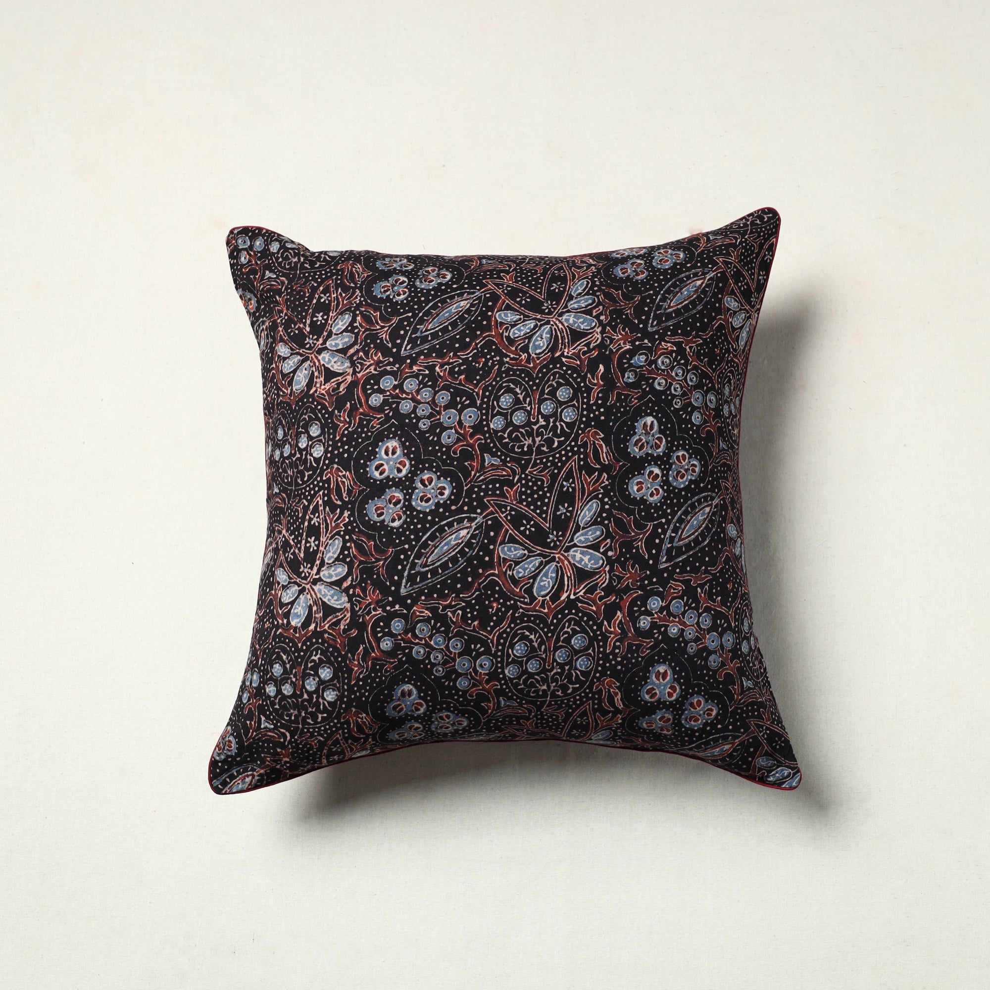 Add a touch of elegance to your home with our black ajrakh print cushion cover. Crafted using the traditional ajrakh technique of hand block printing practiced in the Kutch region of Gujarat, each piece is designed to bring both style and comfort to your living space.