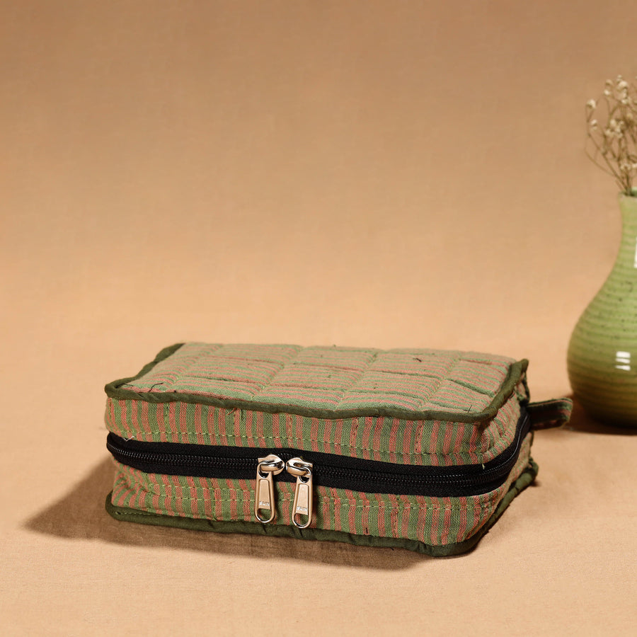 Keep your precious jewelry safe and organized with our eco-friendly green handmade cotton jewelry bag, featuring 4 spacious pockets for easy storage. Crafted by skilled artisans, this soft cotton jewelry bag is perfect for travel or home use.