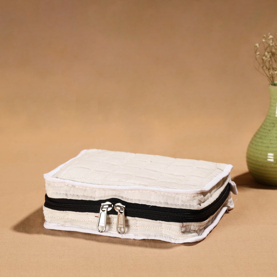 | Material | Keep your precious jewelry safe and organized with our eco-friendly white handmade cotton jewelry bag, featuring 4 spacious pockets for easy storage. Crafted by skilled artisans, this soft cotton jewelry bag is perfect for travel or home use. |