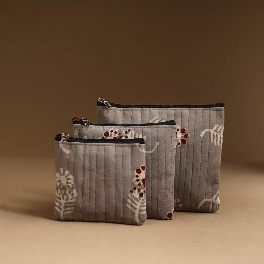Keep your essentials organized with our handmade cotton utility pouches (set of 3). Each pouch is crafted by skilled artisans, featuring a zip-lock closure and a foam layer lining for extra durability. Use these multipurpose pouches for travel, work, or home organization.