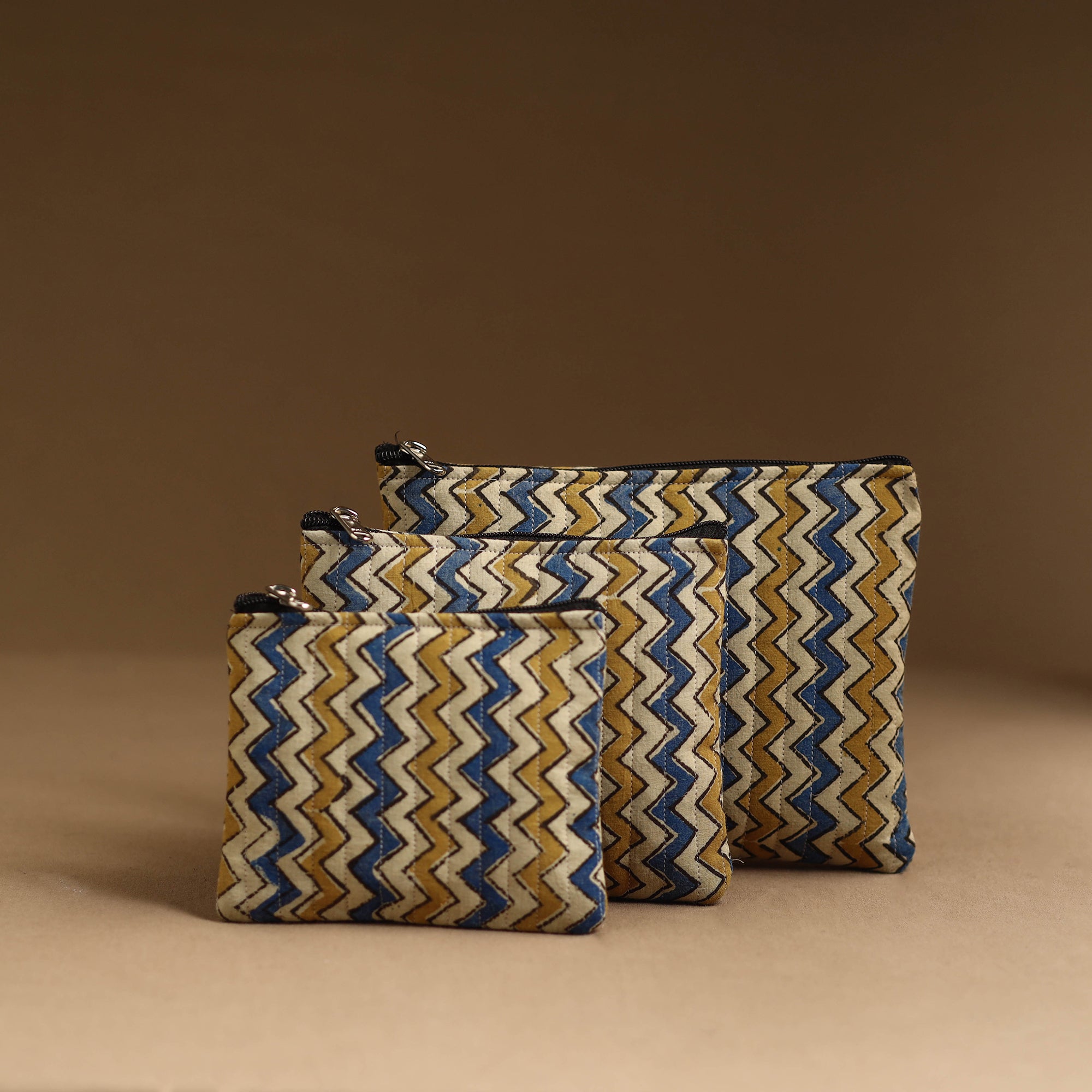 Keep your essentials organized with our handmade cotton utility pouches (set of 3). Each pouch is crafted by skilled artisans, featuring a zip-lock closure and a foam layer lining for extra durability. Use these multipurpose pouches for travel, work, or home organization.