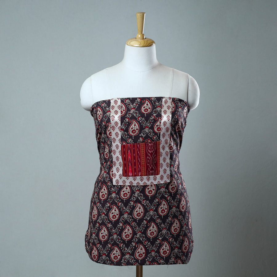 This brown hand-block printed cotton ajrakh kurta material with patchwork showcases the traditional of artisans from Kutch, Gujarat. Made with intricate patterns, it offers both elegance and comfort for any special occasion. The reflects the rich heritage of ajrakh block printing, making it an ideal choice for those who value both tradition and sustainability.