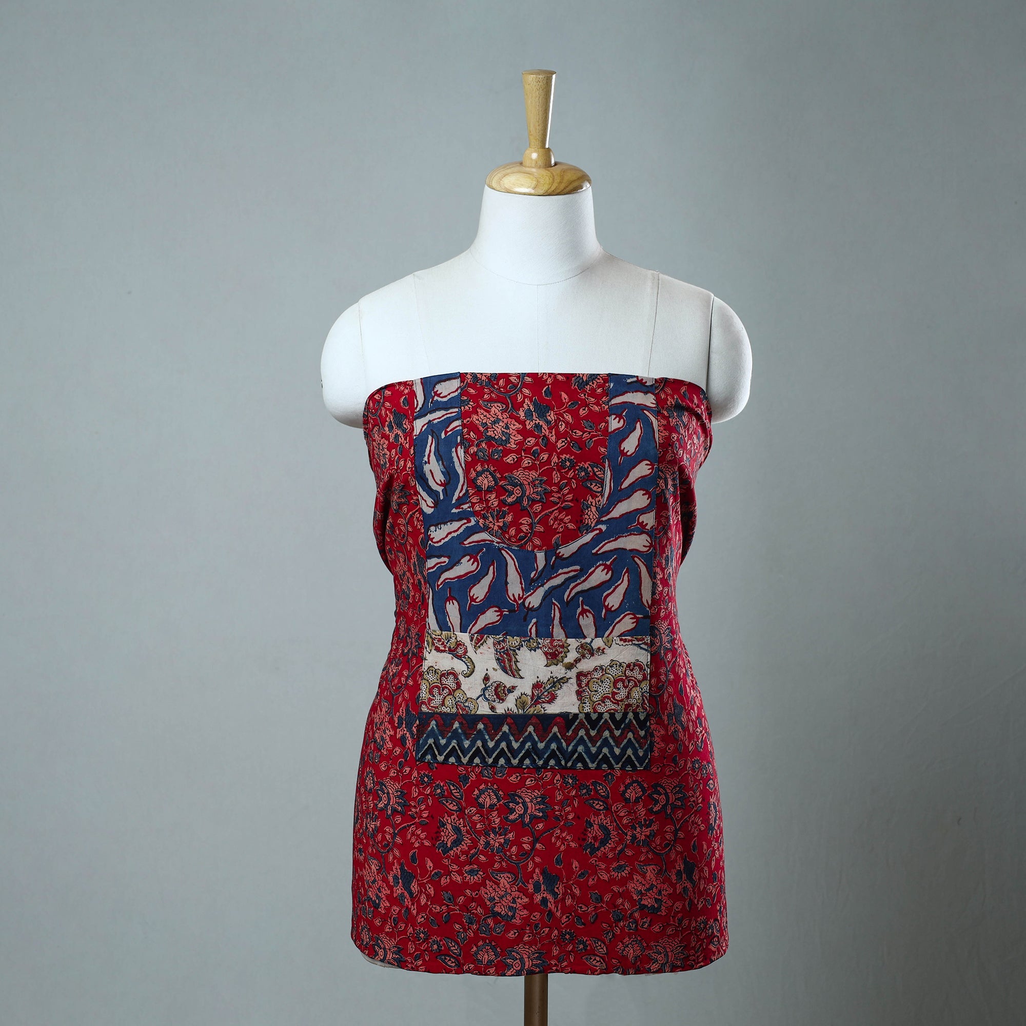 This hand-block printed cotton ajrakh kurta material with patchwork showcases the traditional of artisans from Kutch, Gujarat. Made with intricate patterns, it offers both elegance and comfort for any special occasion. The reflects the rich heritage of ajrakh block printing, making it an ideal choice for those who value both tradition and sustainability.