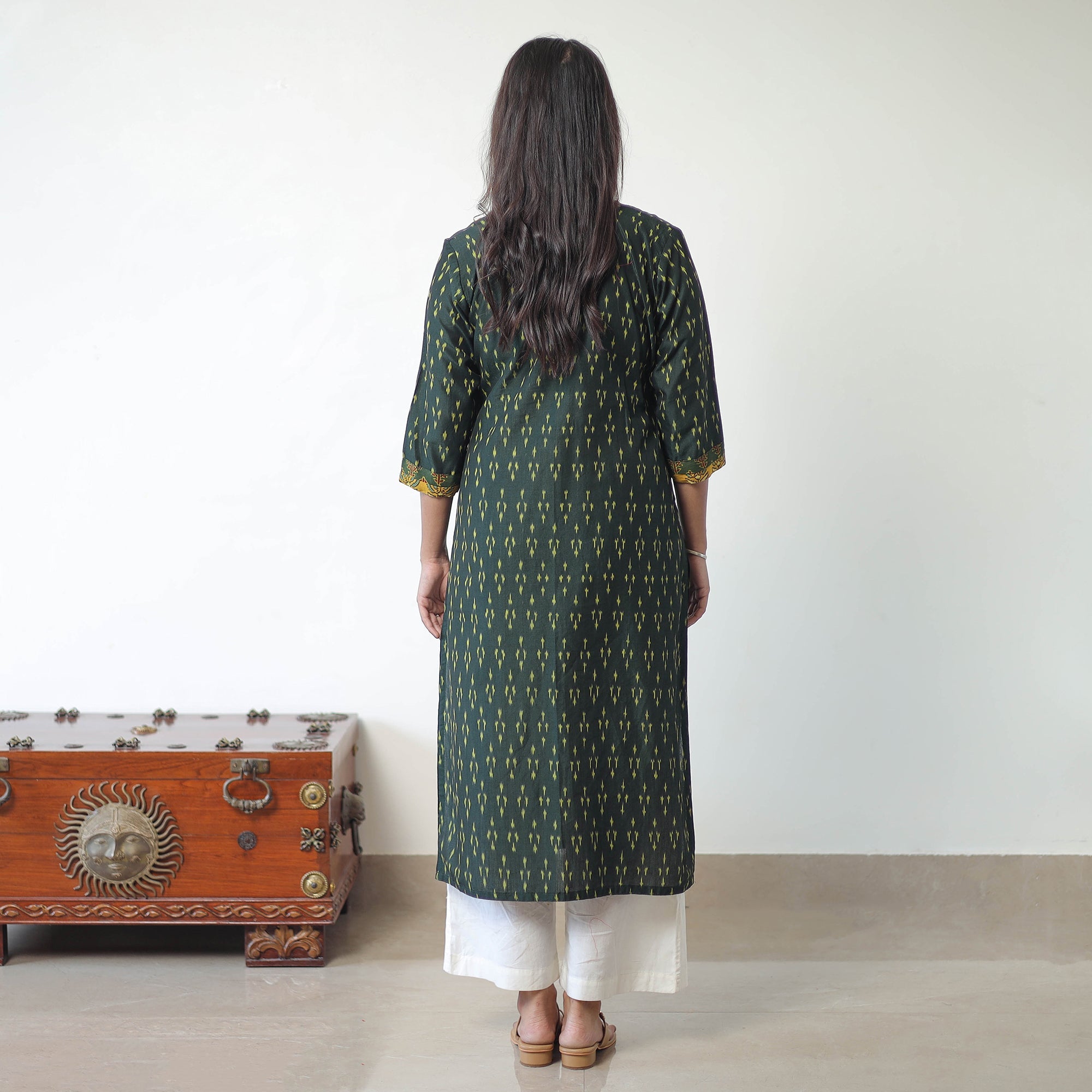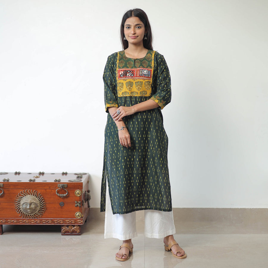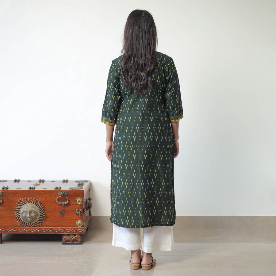 Experience the charm of traditional with our straight pochampally ikat kurta with patchwork, made from mercerised cotton. The pochampally ikat showcases intricate patterns that blend comfort with style, making it perfect for both daily wear and special occasions. With a handy one-side pocket and breathable fabric, this kurta ensures ease and elegance.