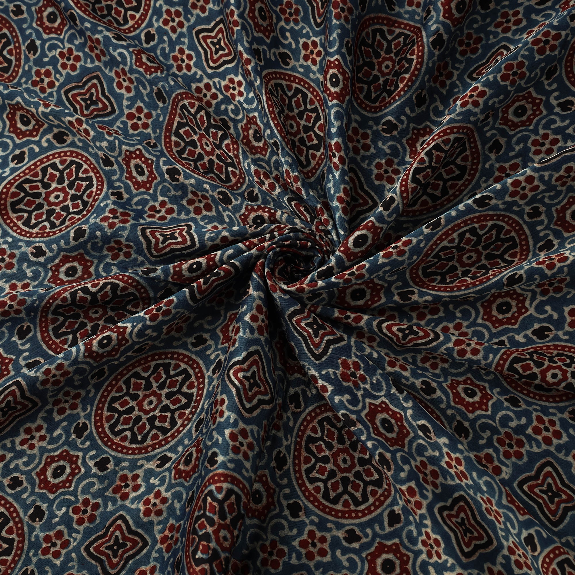 Ajrakh is a well-known traditional vegetable dyeing that resists block-printing techniques on cloth. Originated in Kutch, It is nearly around 4,500 years old practised by Khatri community of Kutch and Sikh.