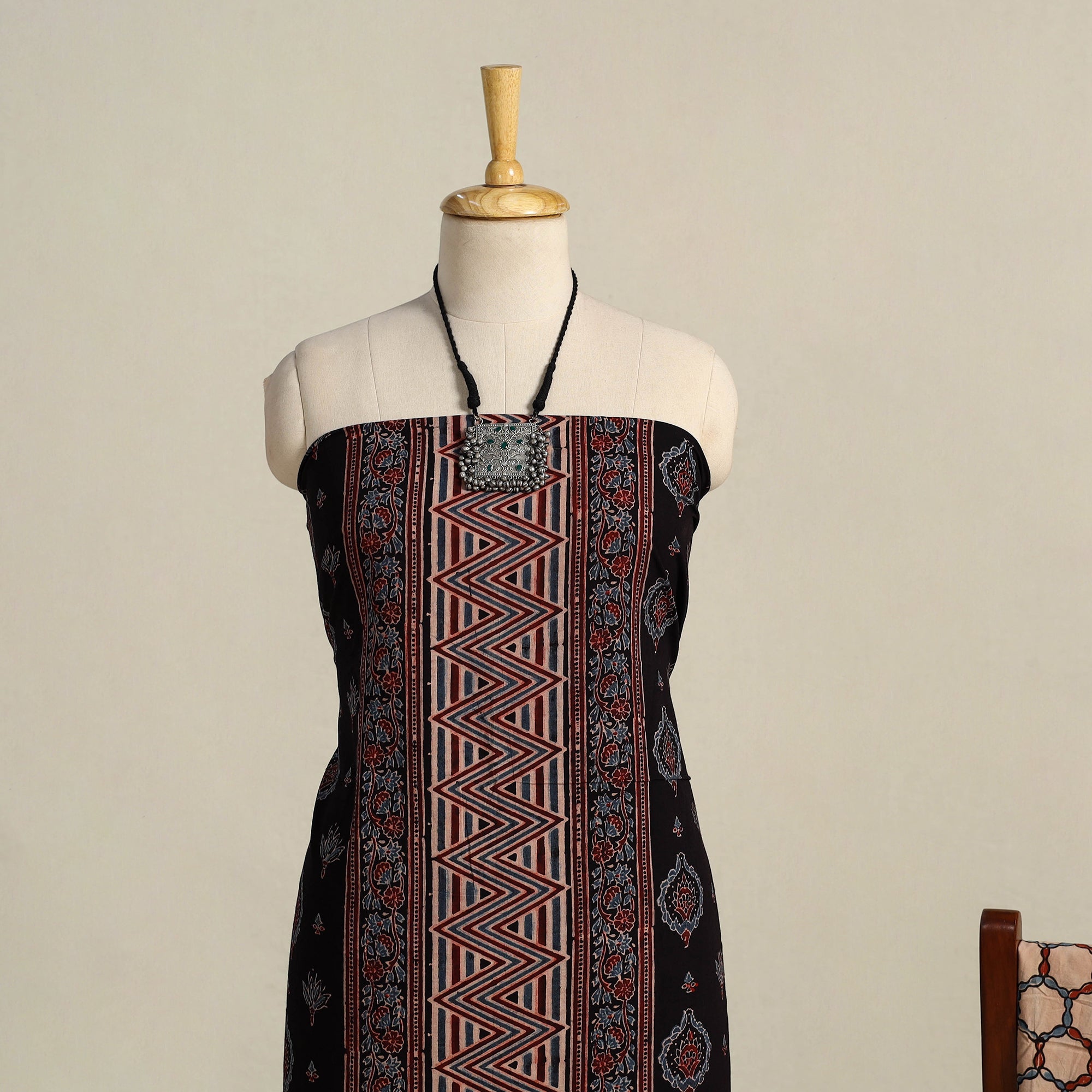 • Black 3pc Block Print Natural Dyed Ajrakh Dress Material