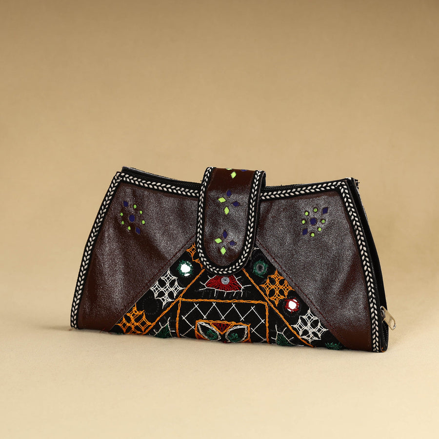 This handcrafted brown wallet, made with cruelty-free leather and cotton fabric, is adorned with Kutch mirror embroidery, bringing a touch of traditional to modern fashion. With two zipper pockets and a cotton fabric lining, this wallet provides ample space for all your essentials.