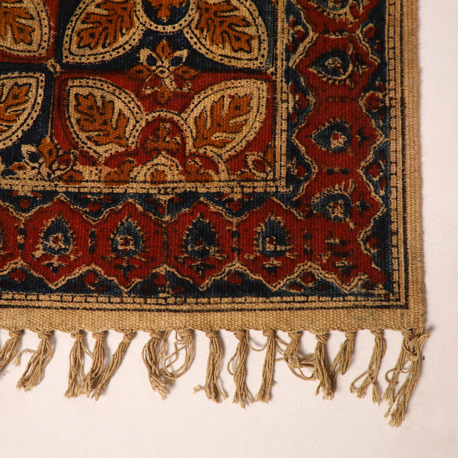 Add a touch of traditional elegance to your home with this kalamkari block printed cotton mat, showcasing motifs inspired by ancient Indian art. Made using the Warangal weave technique, each mat is block printed by skilled artisans, reflecting the intricate details of Kalamkari painting.