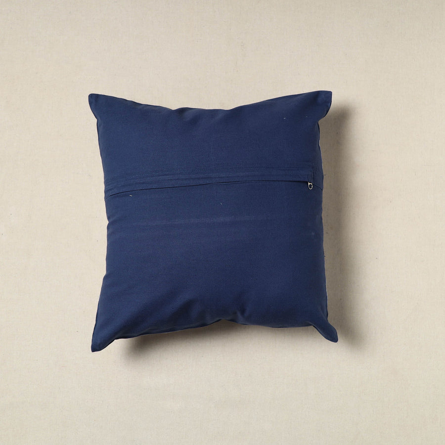Enhance your home with the charm of this blue handcrafted shibori cushion cover. Care for your piece by hand washing in cold water. Created using the traditional shibori technique, where fabric is intricately tied and dyed, each cover reflects a unique pattern.