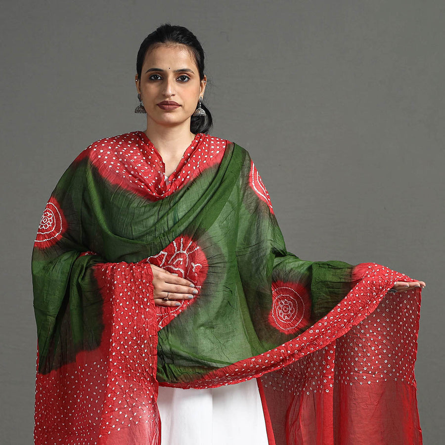 Experience the of Kutch's traditional tie-dye artistry with our cotton bandhani dupatta. Each dupatta is crafted by skilled artisans using the bandhej technique, where the fabric is tied at various points before being dyed to create intricate patterns. Made from cotton, it’s perfect for festive occasions and everyday ethnic wear.