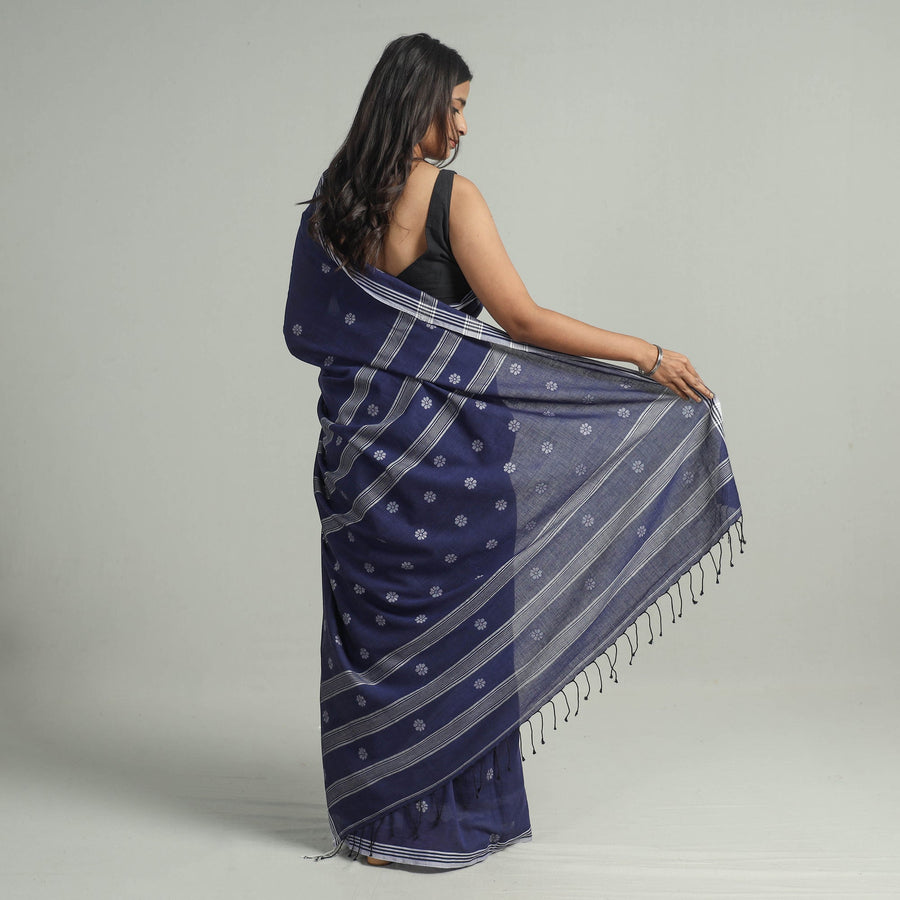This blue phulia jamdani saree is a blend of elegance and traditional artistry. Its tapestry-like texture, woven with colored, gold, or silver threads, reflects timeless artistry. Lightweight and breathable, this saree is perfect for any occasion. Its unique tapestry-like texture adds timeless beauty to your wardrobe.