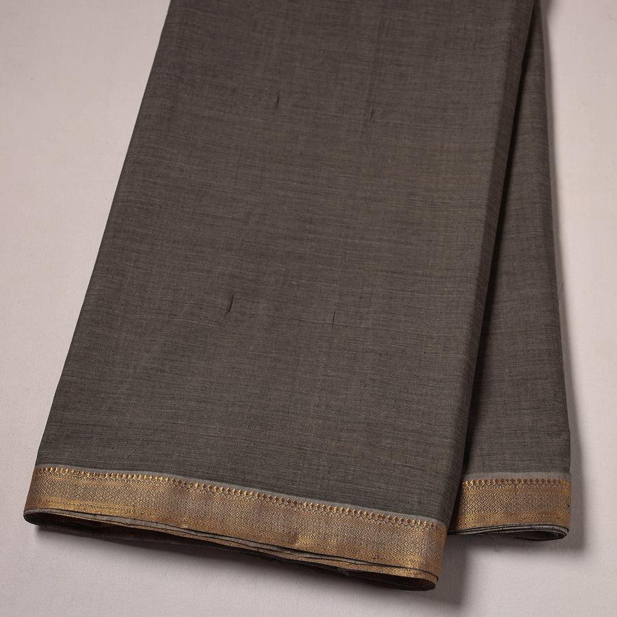 Fine-quality original grey mangalagiri handloom cotton fabric from Andhra Pradesh. This fabric features a traditional two-sided nizam zari border, giving it a regal appeal. Made from soft, breathable cotton, it's perfect for all clothing purposes.