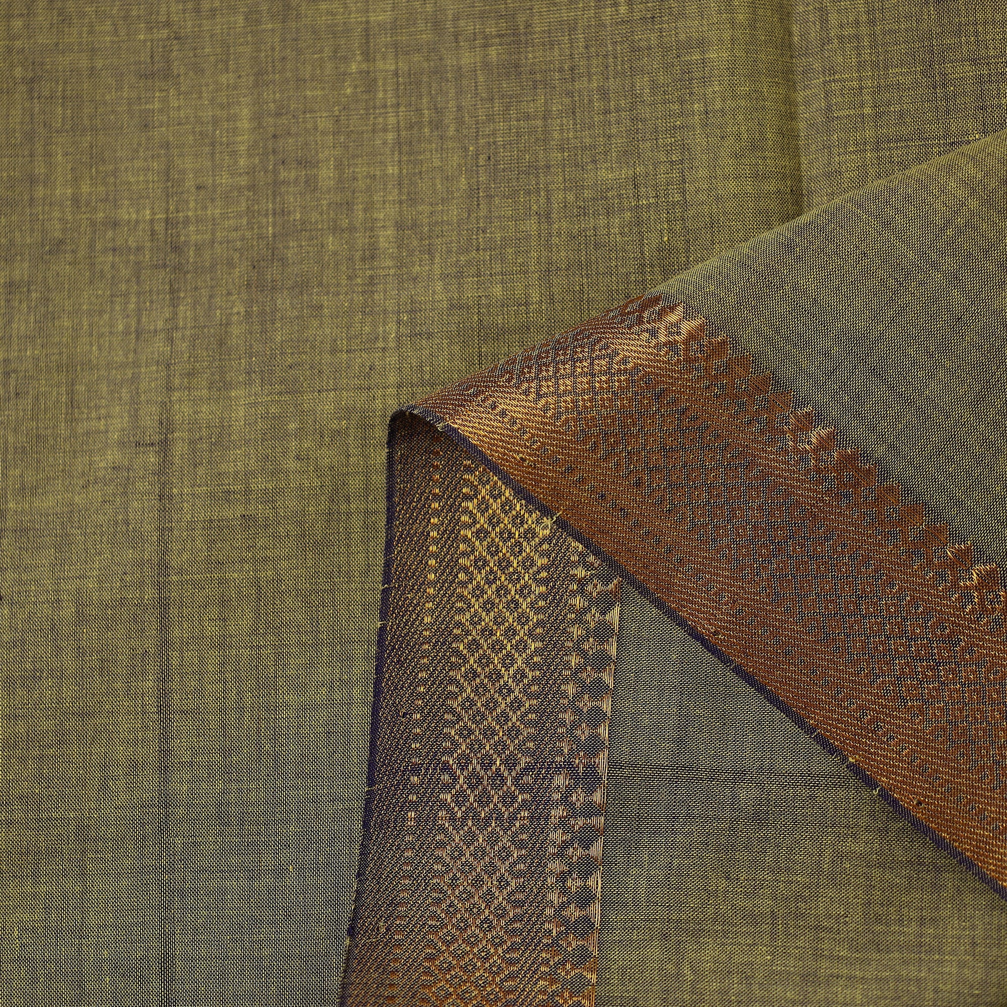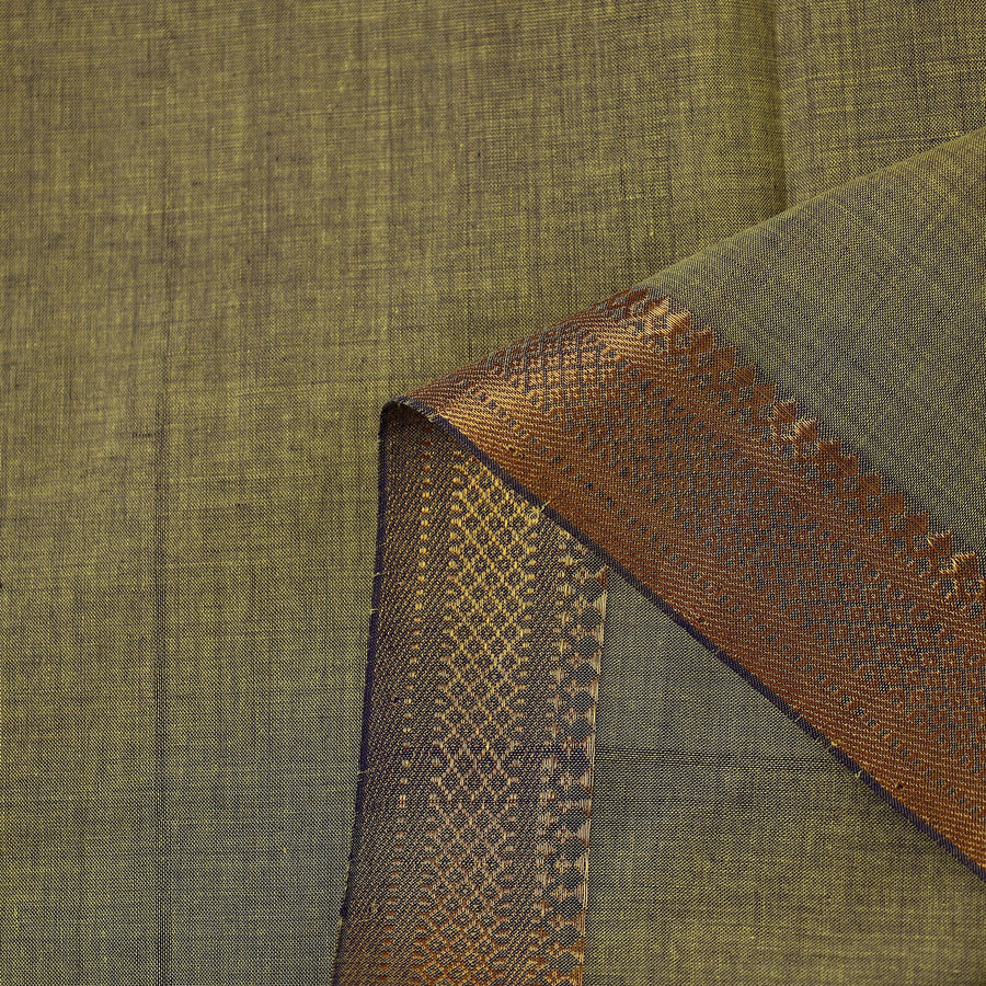 Fine-quality original green mangalagiri handloom cotton fabric from Andhra Pradesh. This fabric features a traditional two-sided nizam zari border, giving it a regal appeal. Made from soft, breathable cotton, it's perfect for all clothing purposes.