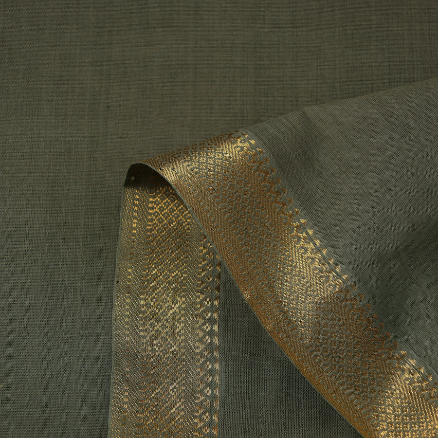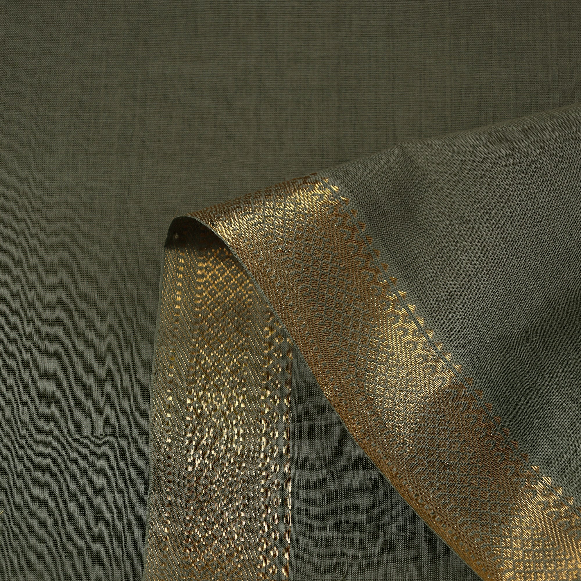 Fine-quality original green mangalagiri handloom cotton fabric from Andhra Pradesh. This fabric features a traditional two-sided nizam zari border, giving it a regal appeal. Made from soft, breathable cotton, it's perfect for all clothing purposes.