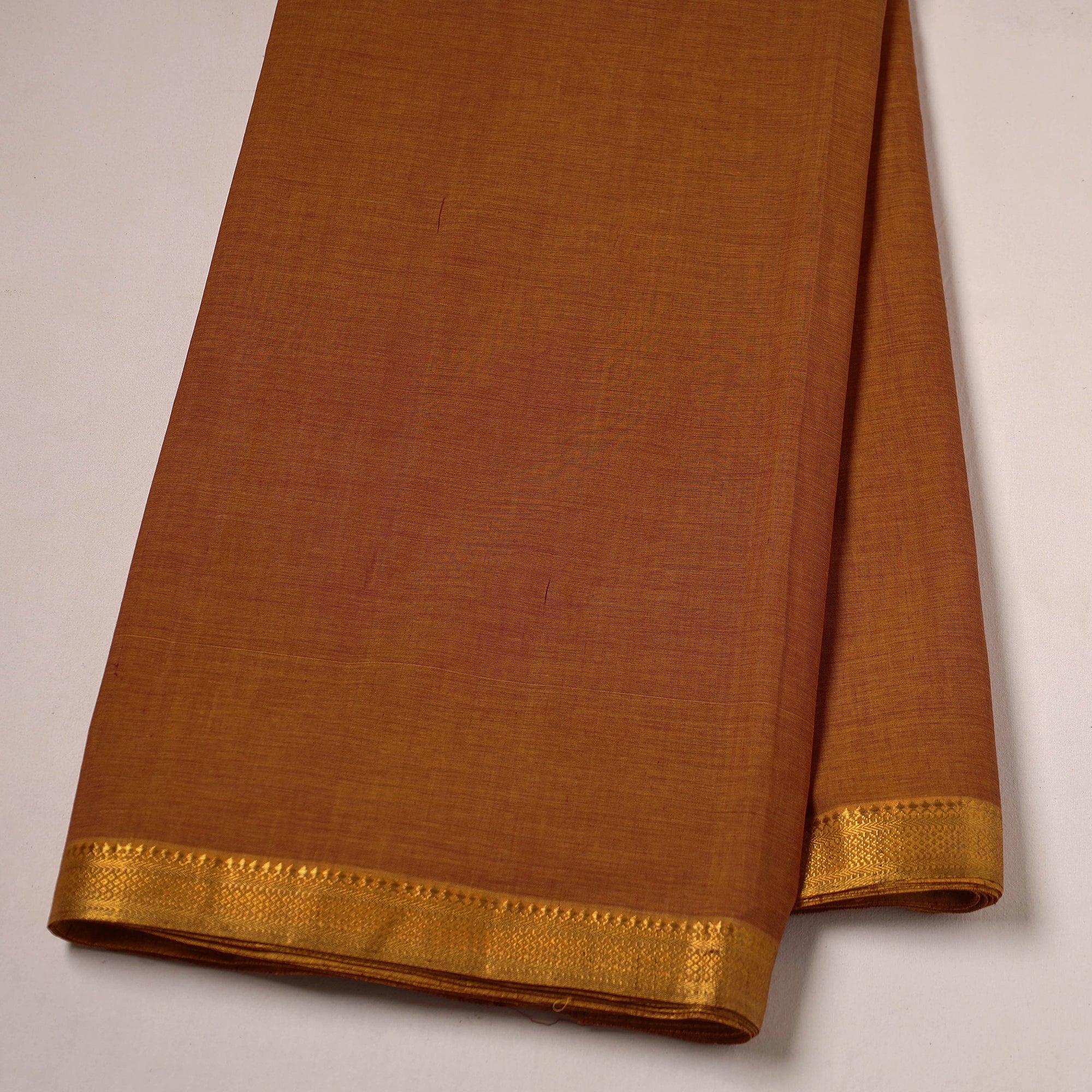 Fine-quality original orange mangalagiri handloom cotton fabric from Andhra Pradesh. This fabric features a traditional two-sided nizam zari border, giving it a regal appeal. Made from soft, breathable cotton, it's perfect for all clothing purposes.