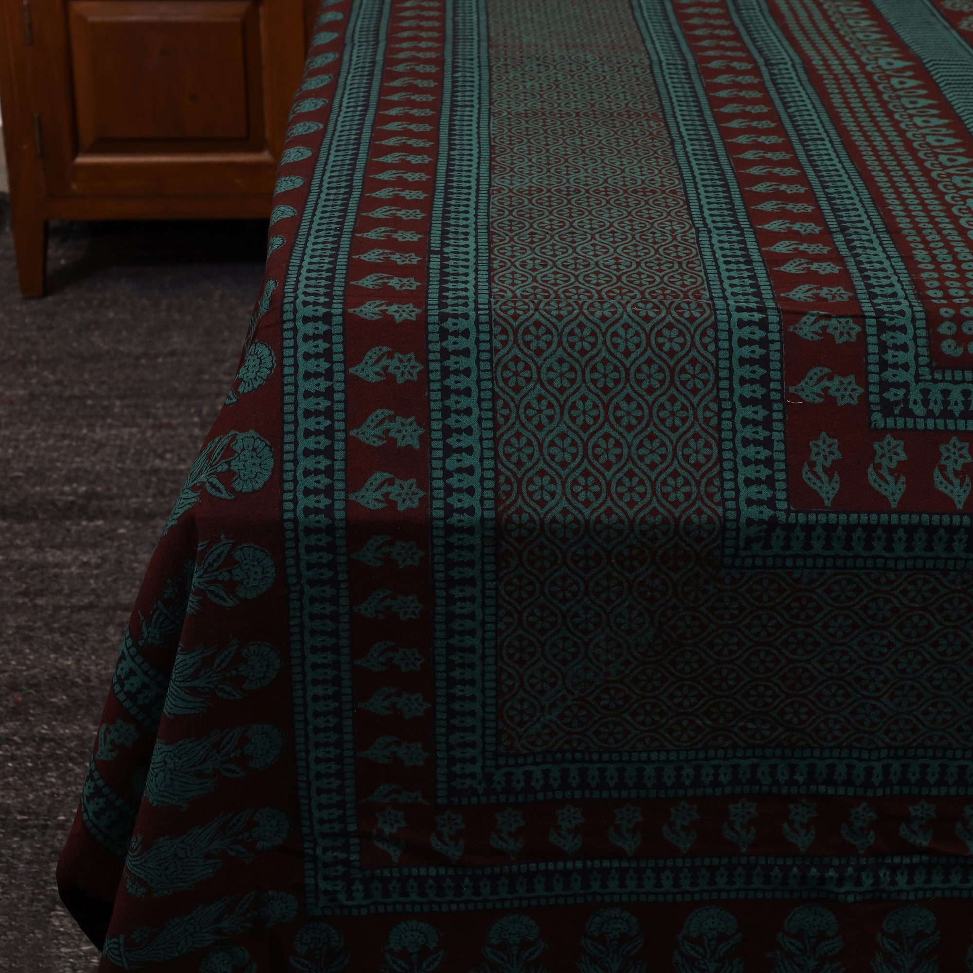 Green - Cotton Bagh Print Double Bedsheet with Pillow Covers 12