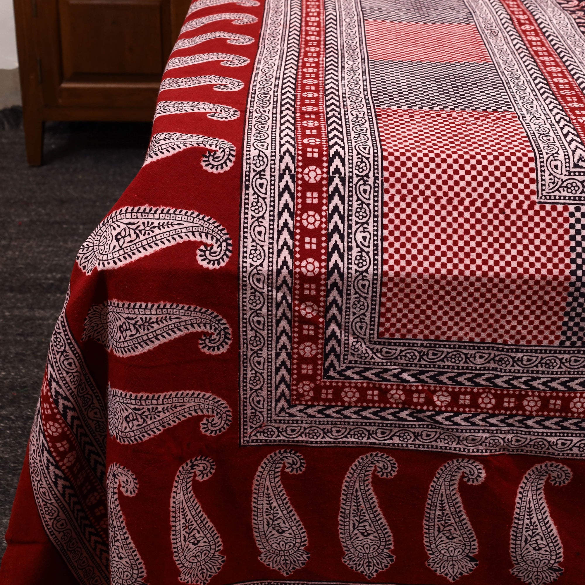 Elevate your bedroom with our exquisite bagh print bedcover. This double bed cover showcases the rich heritage of bagh block printing, a traditional craft from madhya pradesh. Made with natural dyes and cotton, each piece is a testament to the skill of master artisans. The set includes matching pillow covers, adding a cohesive touch to your decor. Explore more of our artisan collections and support traditional crafts.