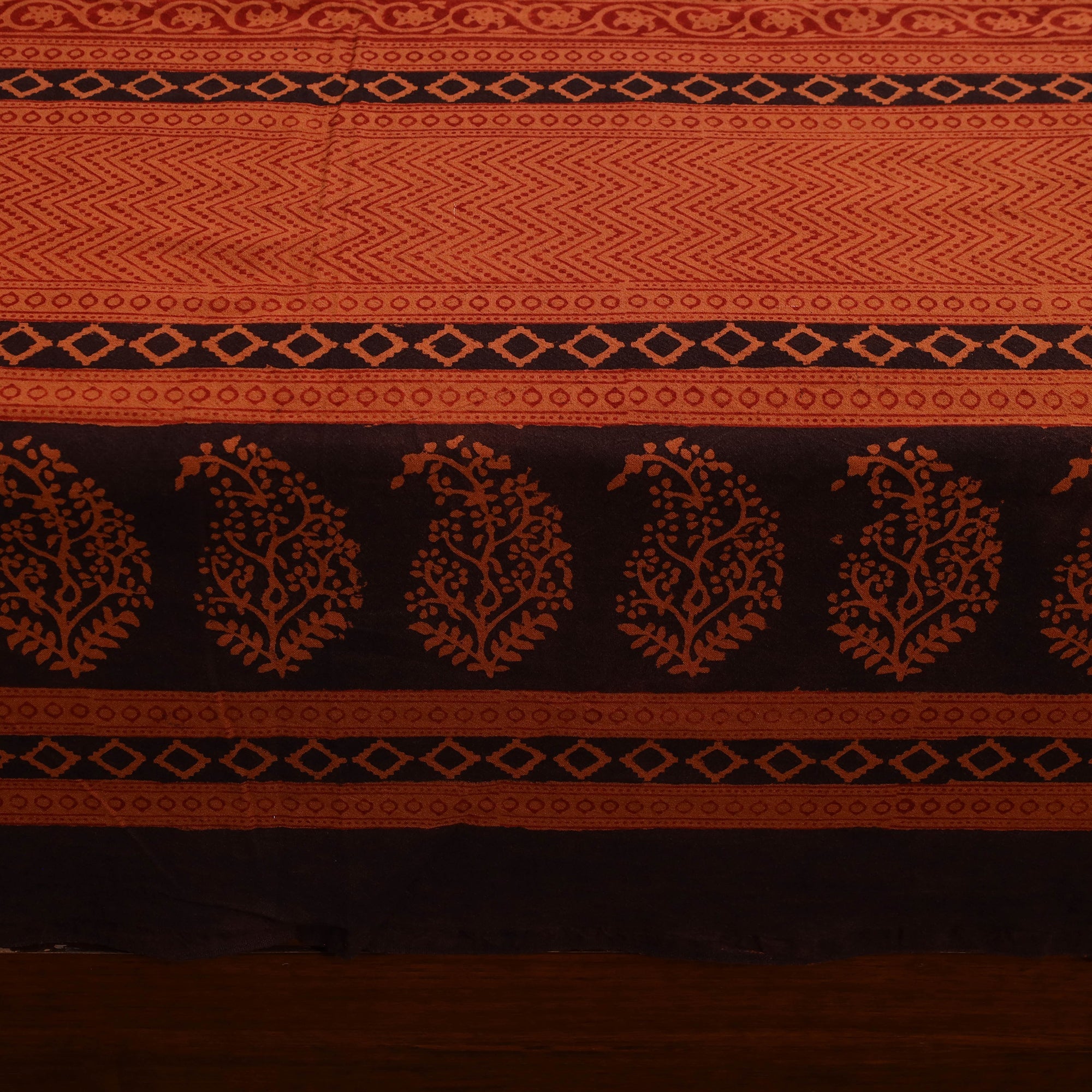Orange - Cotton Bagh Print Double Bedsheet with Pillow Covers 20