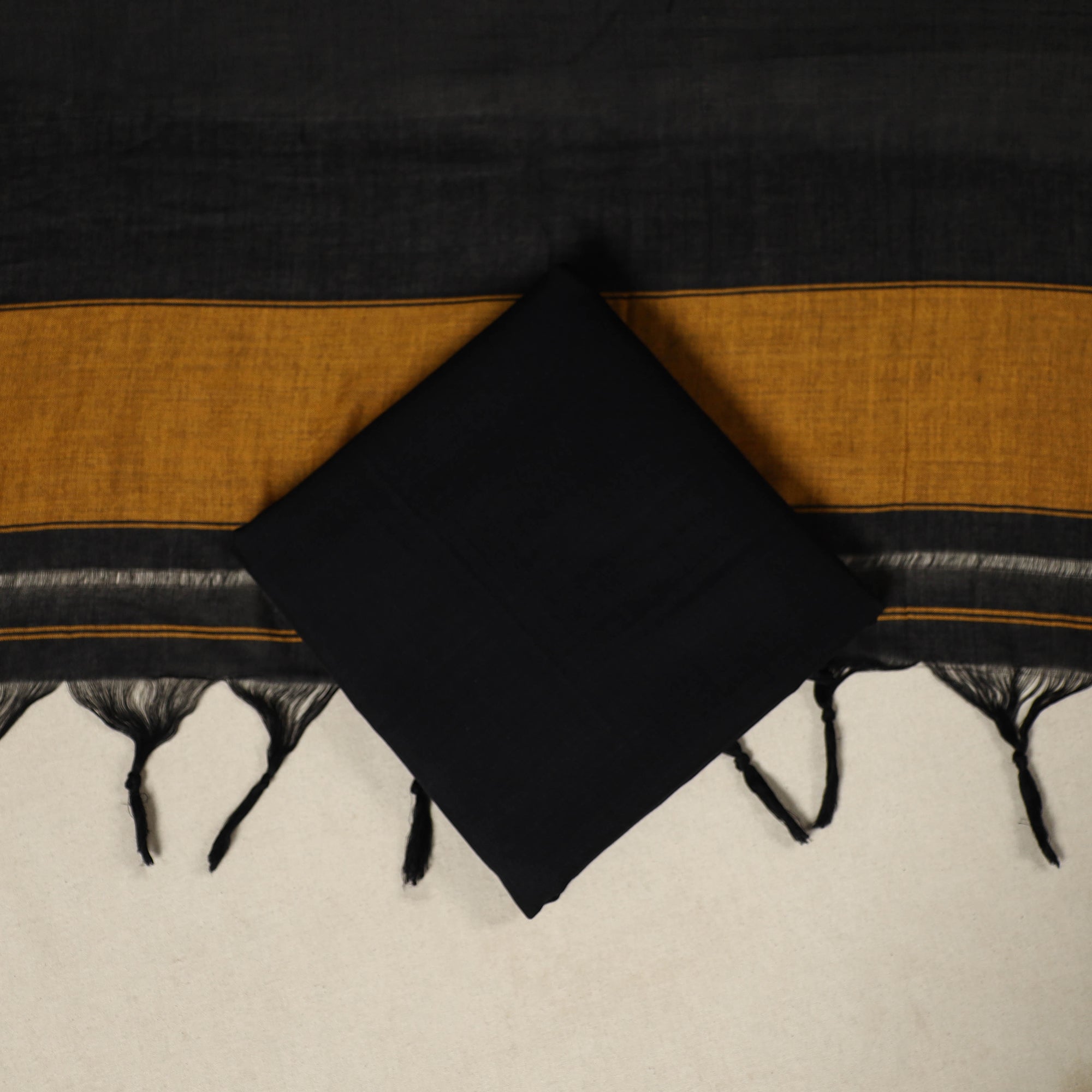 Embrace the charm of beautifully designed & incredibly comfortable black 3pc traditional cotton dharwad dress material from Dharwad, Karnataka. This set includes a kurta, salwar, and dupatta and featuring exquisite zari woven borders. Made from cotton, Ideal for any occasion, this set combines sophistication with comfort.