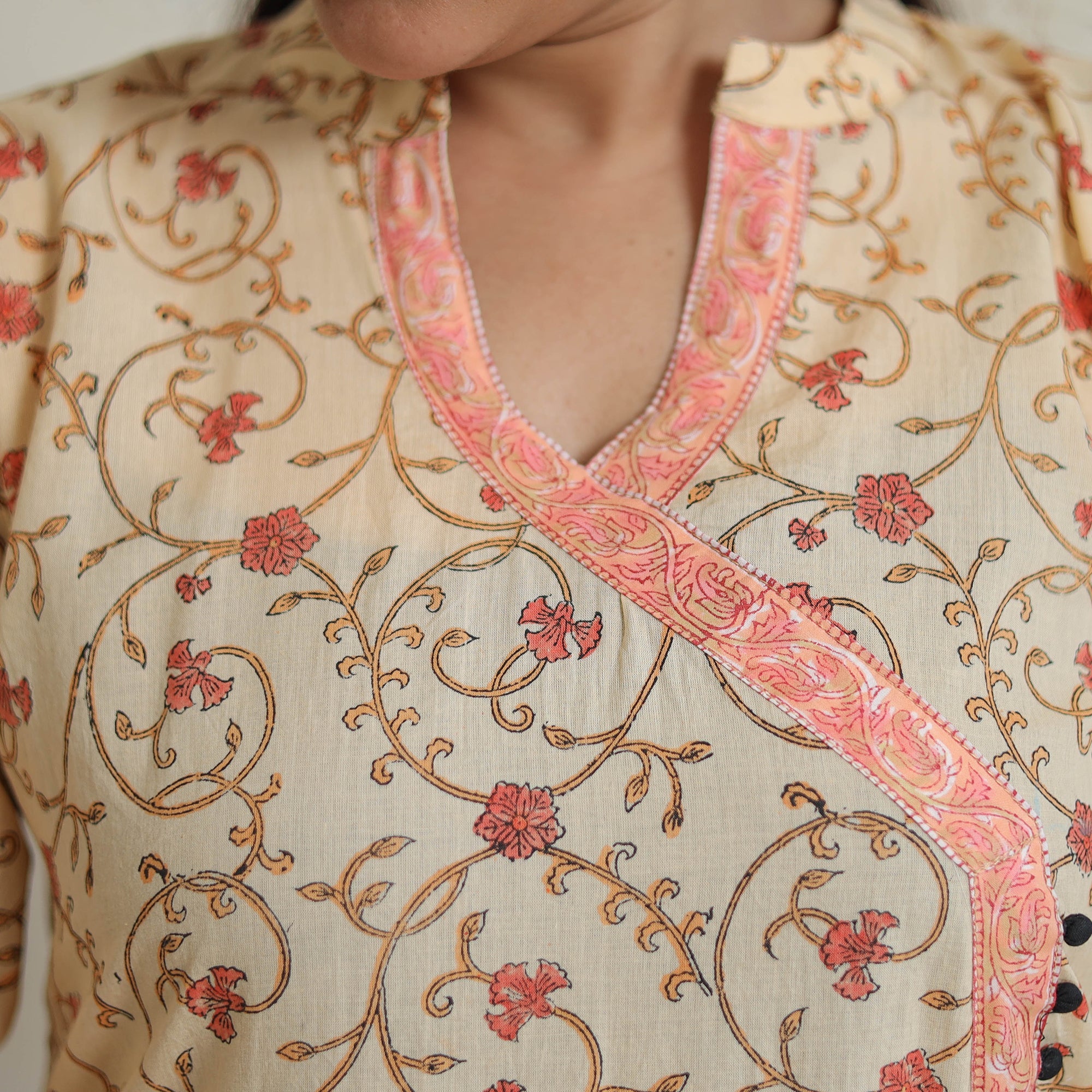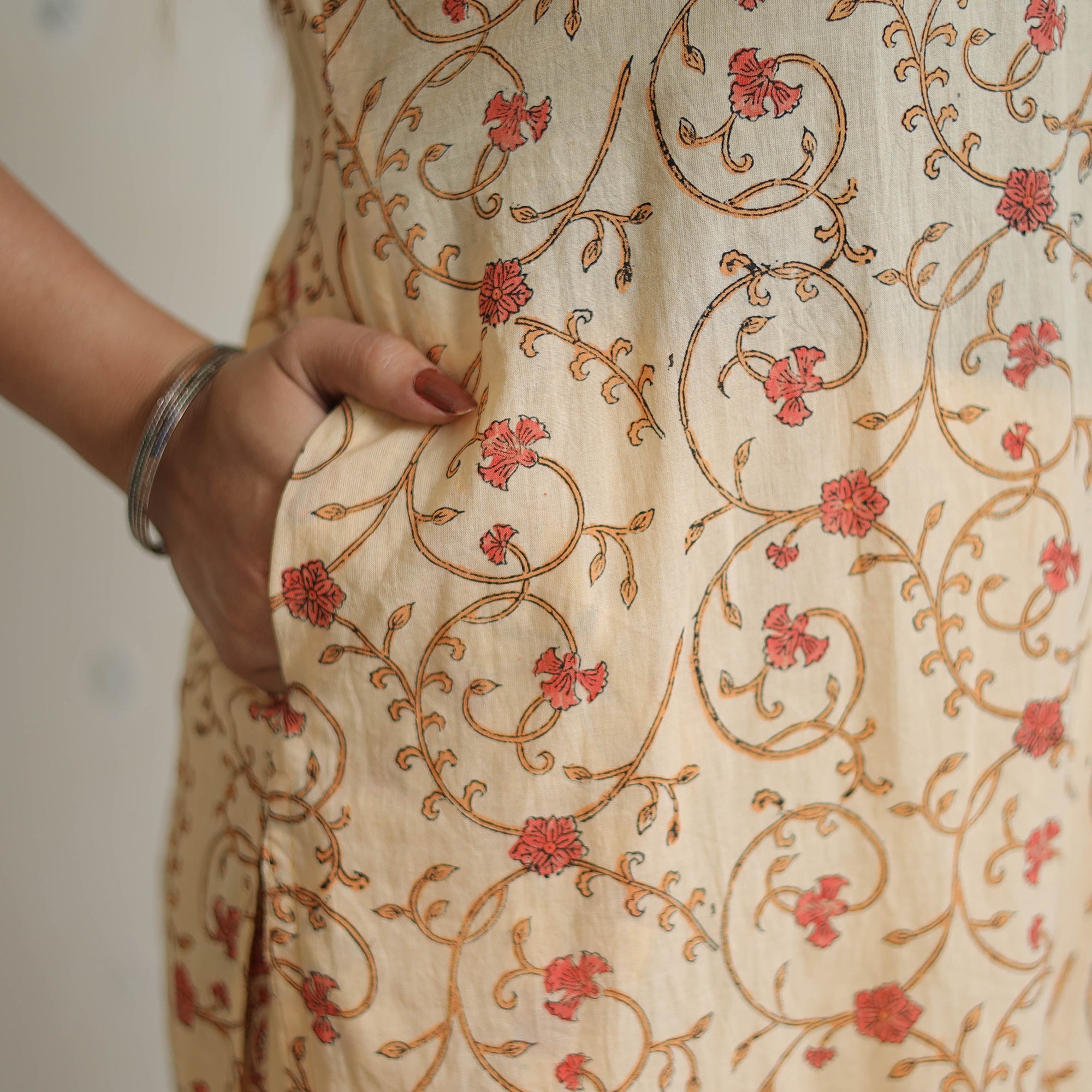 Beige - Hand Block Print Cotton Sanganeri Fabric 05