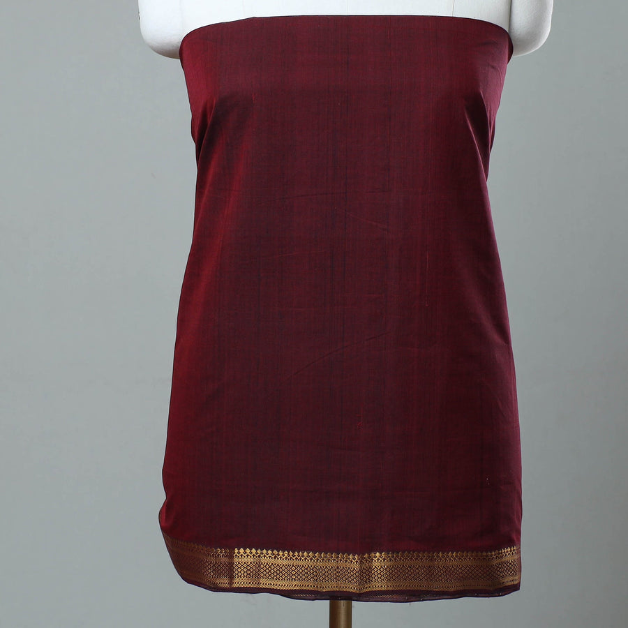 Maroon - Handloom Cotton Mangalagiri Fabric with Zari Border 26