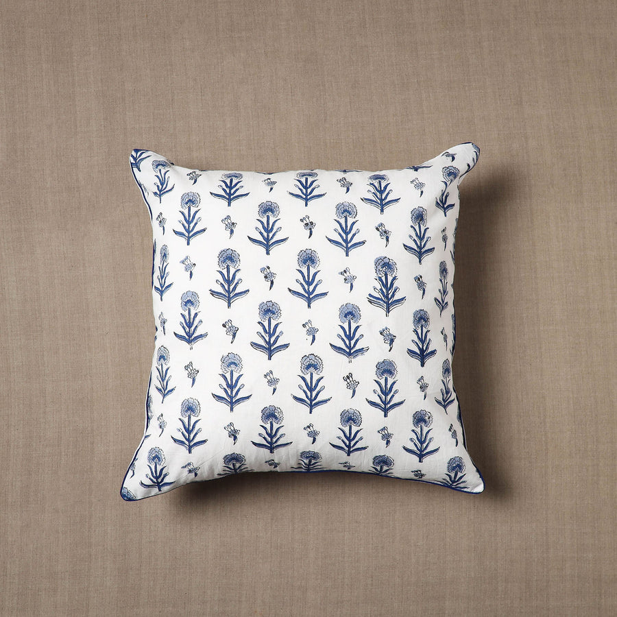 Add a touch of Rajasthan to your home with these white sanganeri floral cushion covers. Made from cotton, these cushion covers are hand-block printed using traditional techniques from the village of Sanganer.