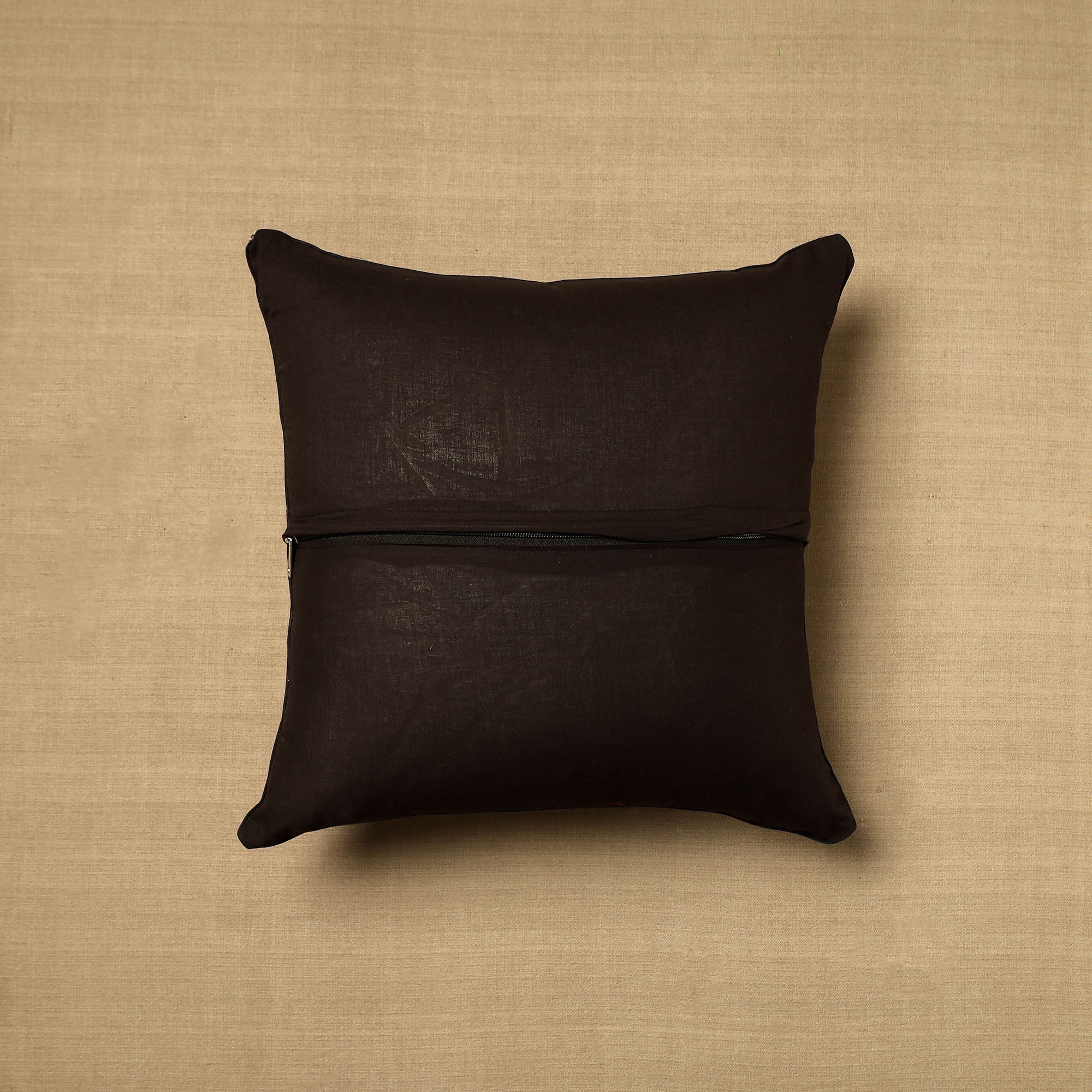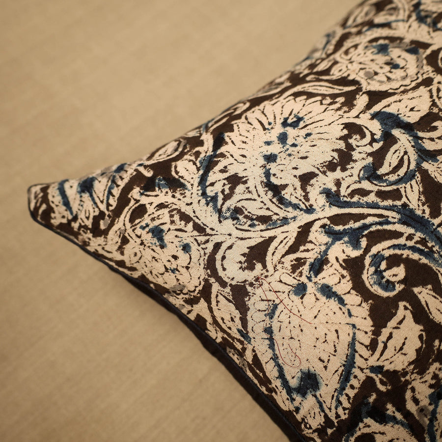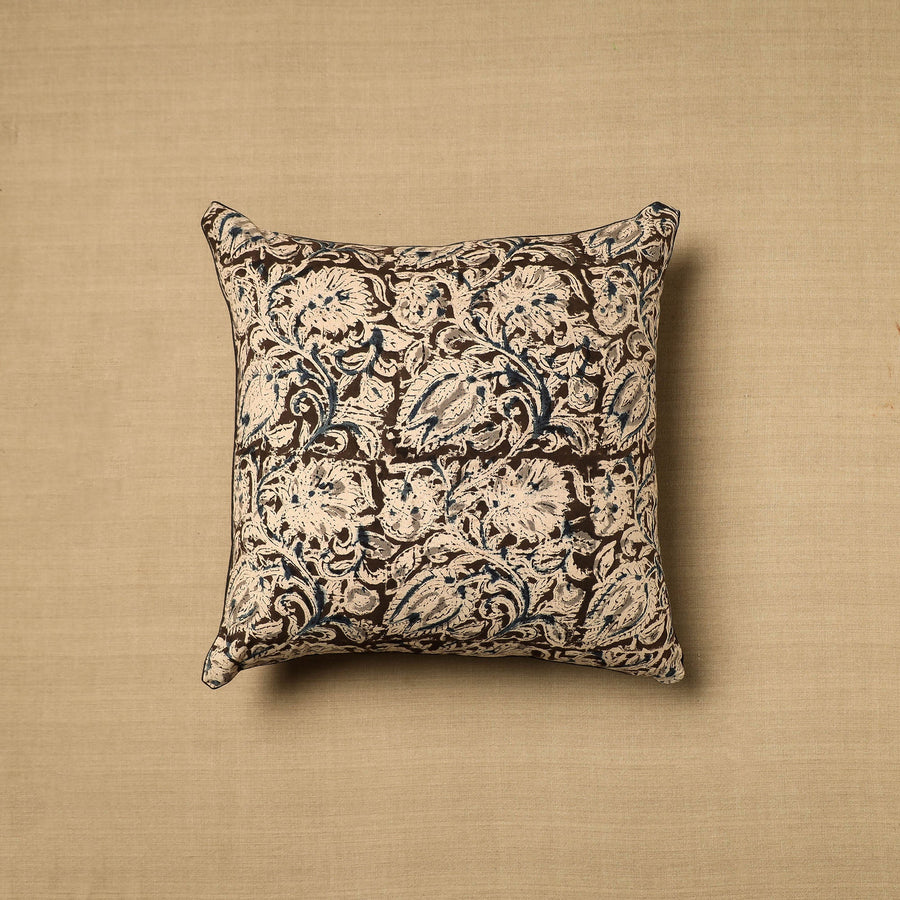 Elevate your home decor with our beige hand-block-printed cotton kalamakari cushion cover, a testament to traditional craftsmanship. Kalamkari is the earliest and more complex technique of block printing; this showcases intricate block-printed motifs on high-quality cotton.