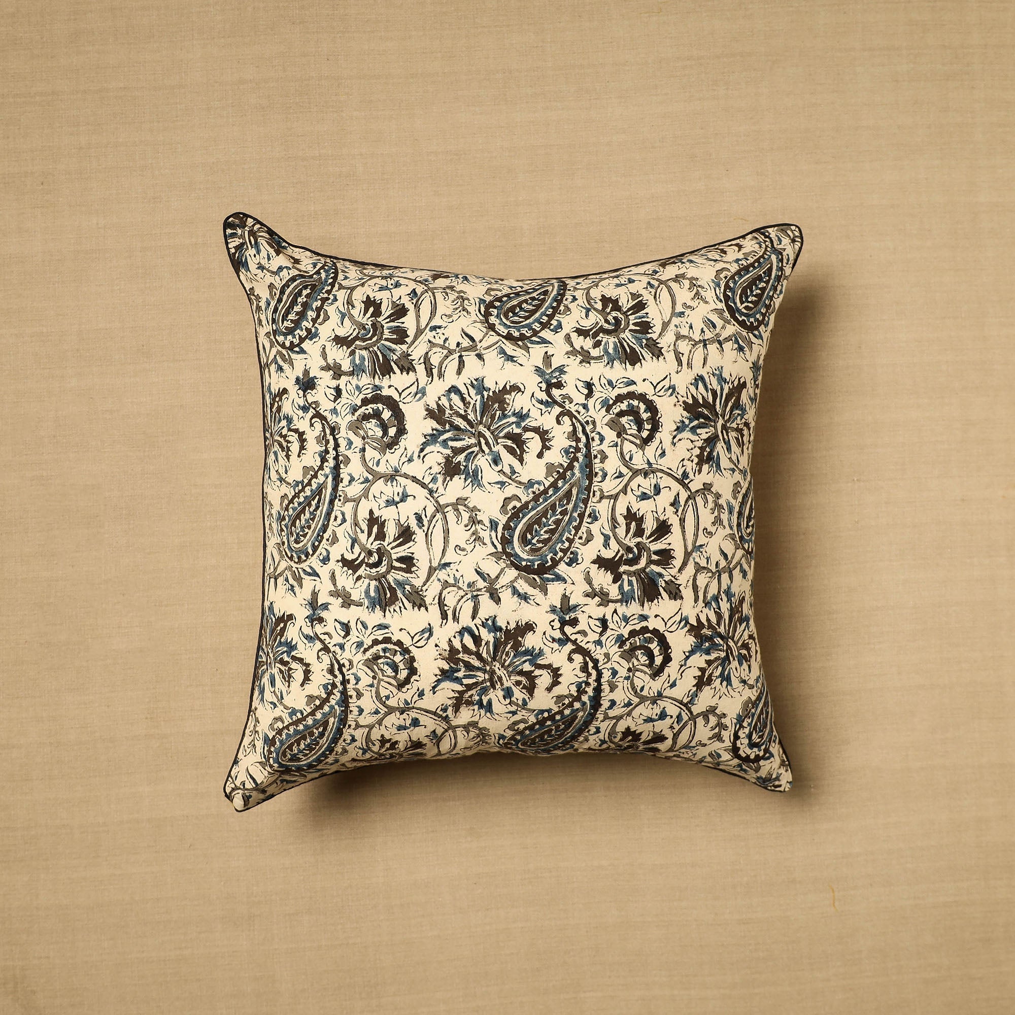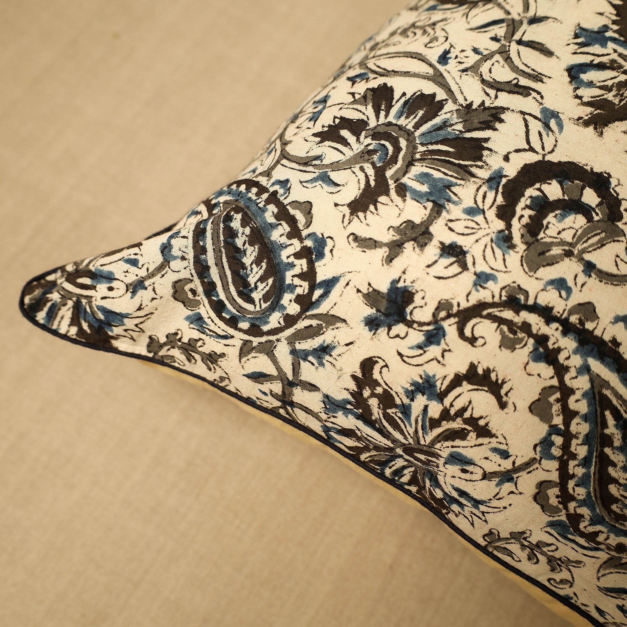 Elevate your home decor with our beige hand-block-printed cotton kalamakari cushion cover, a testament to traditional craftsmanship. Kalamkari is the earliest and more complex technique of block printing; this showcases intricate block-printed motifs on high-quality cotton.