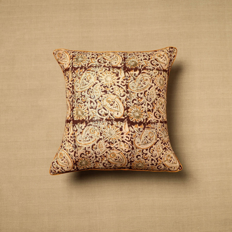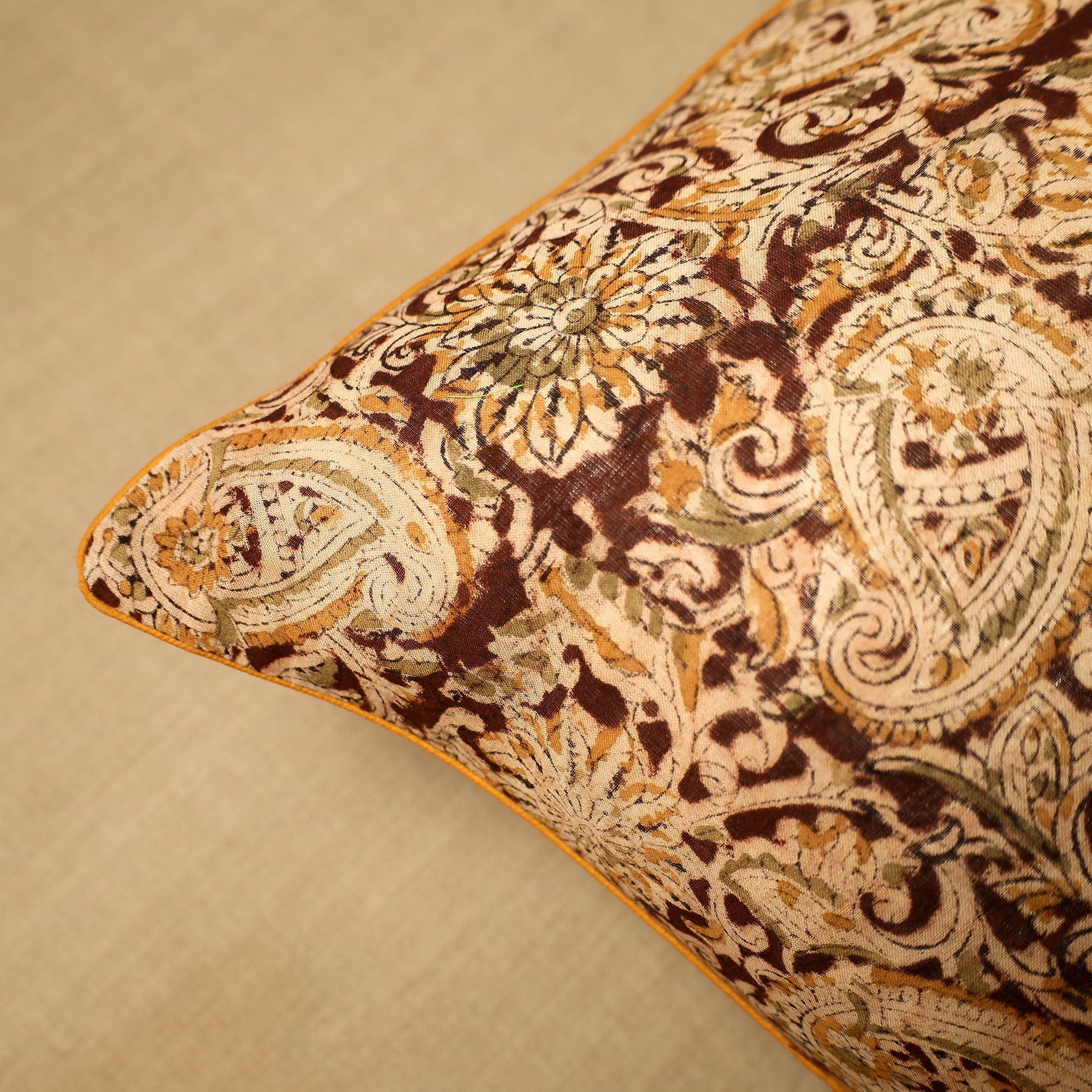 Elevate your home decor with our beige hand-block-printed cotton kalamakari cushion cover, a testament to traditional craftsmanship. Kalamkari is the earliest and more complex technique of block printing; this showcases intricate block-printed motifs on high-quality cotton.