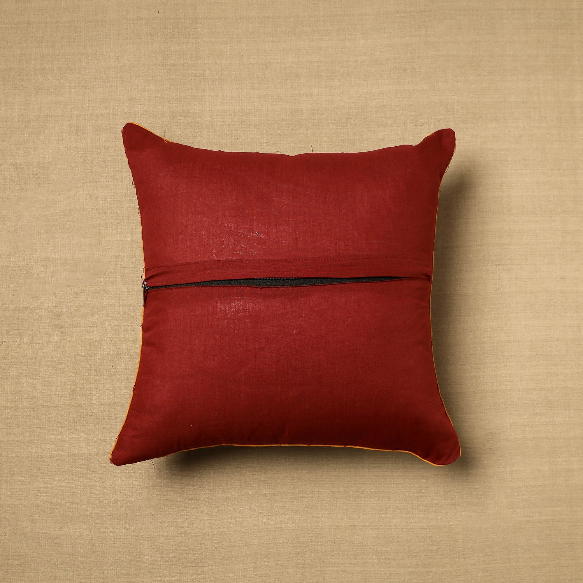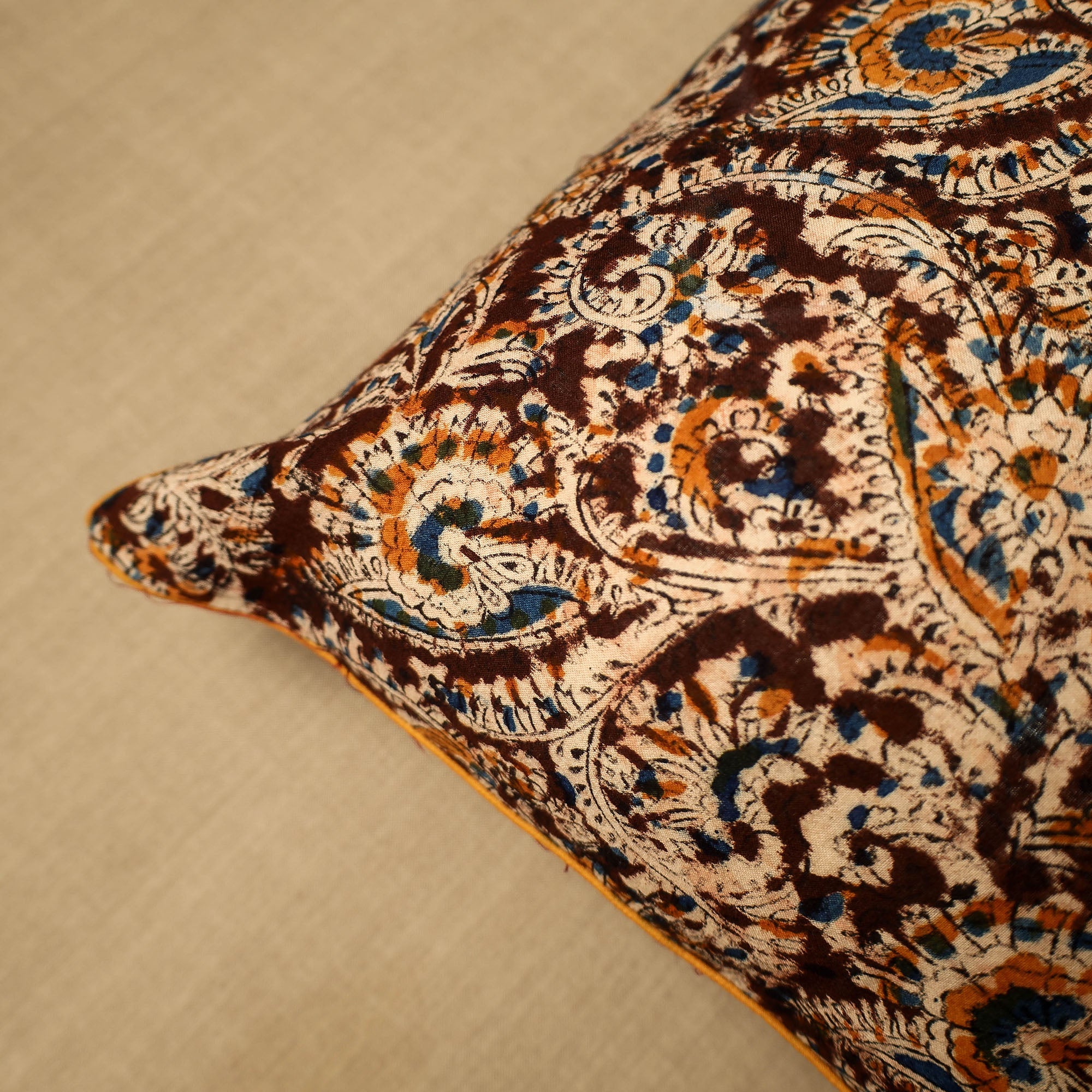 Elevate your home decor with our maroon hand-block-printed cotton kalamakari cushion cover, a testament to traditional craftsmanship. Kalamkari is the earliest and more complex technique of block printing; this showcases intricate block-printed motifs on high-quality cotton.
