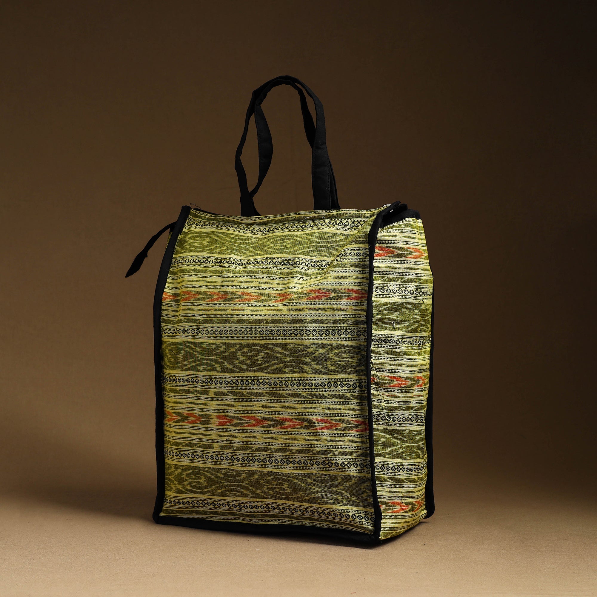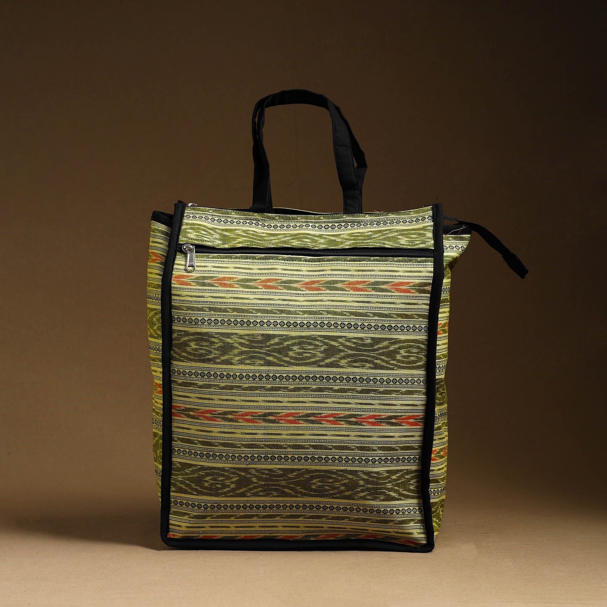 Upgrade your shopping style with this green handcrafted cotton shopping hand bag, designed for durability and sustainability. Spacious enough to hold your daily essentials, it features a convenient outer zipper pocket for easy access to your belongings.