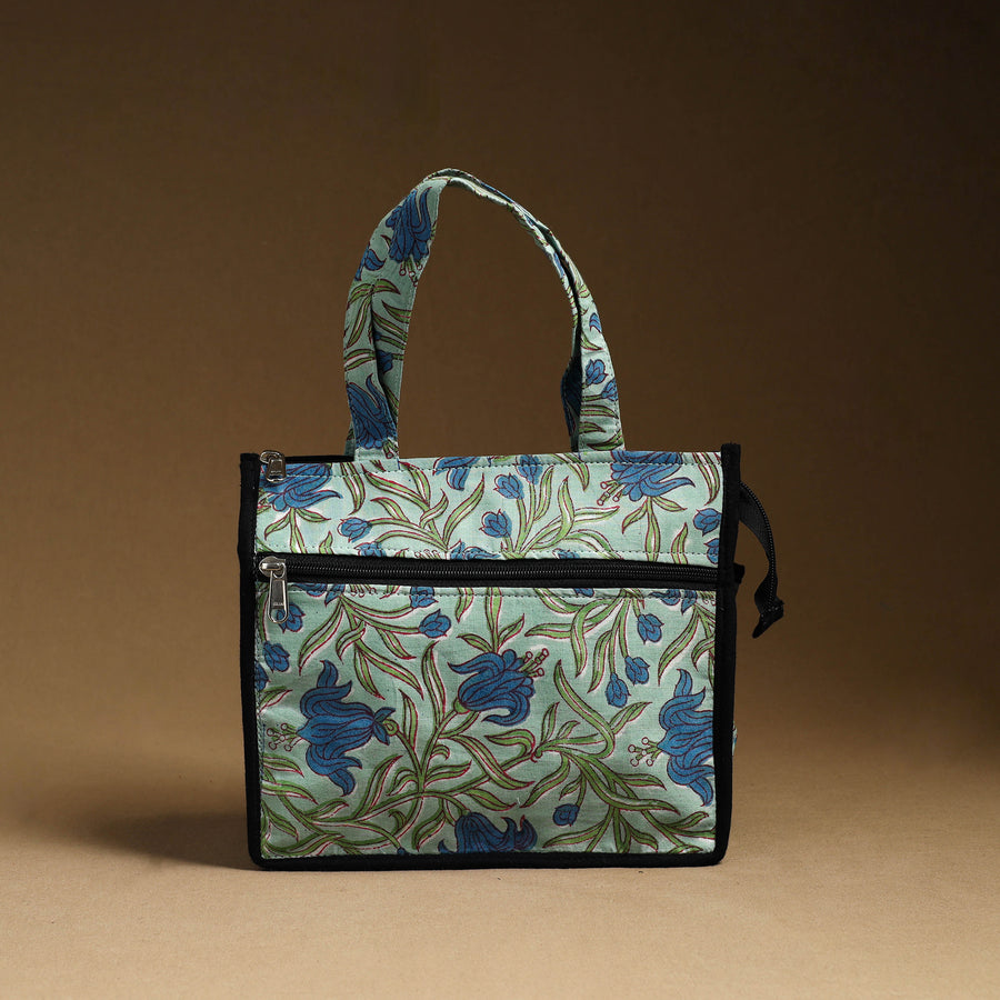 This green handcrafted cotton small hand bag for women combines timeless style with functionality. Made by skilled artisans, it features ample space for daily essentials, an internal zipped pocket, and a convenient front pocket. Perfect for daily use or special occasions.