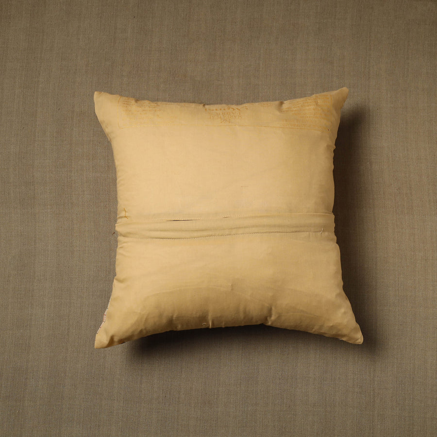 This exquisite beige kanchipuram cushion cover handcrafted from cotton fabric.Each cover features patchwork that reflects the rich cultural heritage of kanchipuram. Perfect for adding a touch of elegance and charm to any room, this cushion cover blends durability with style.