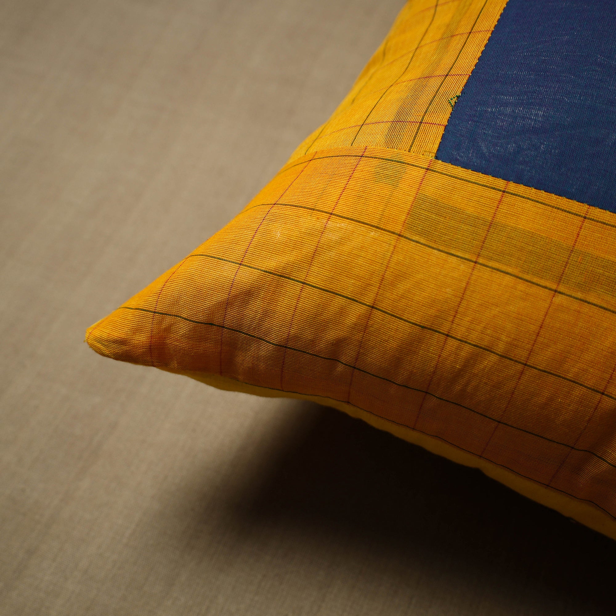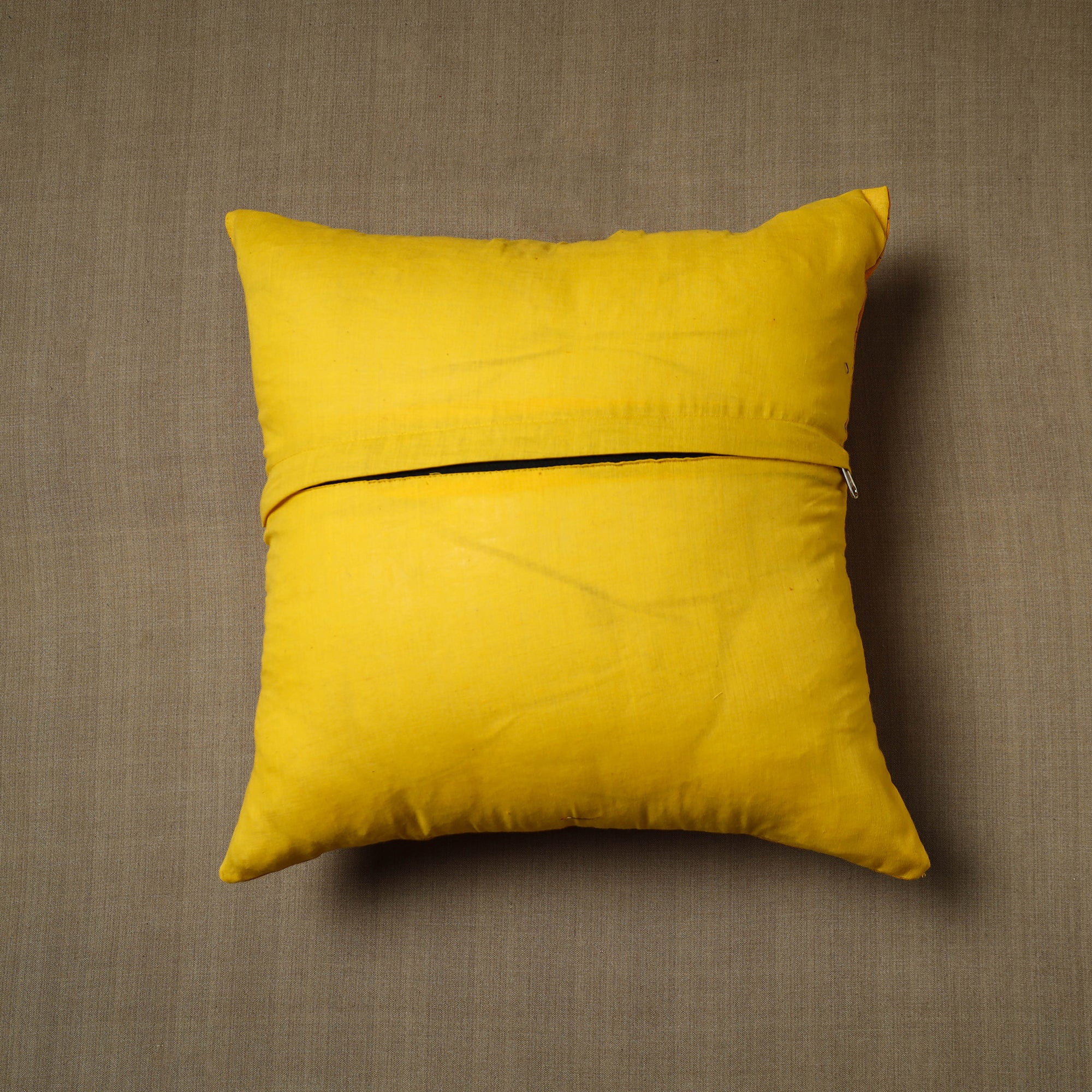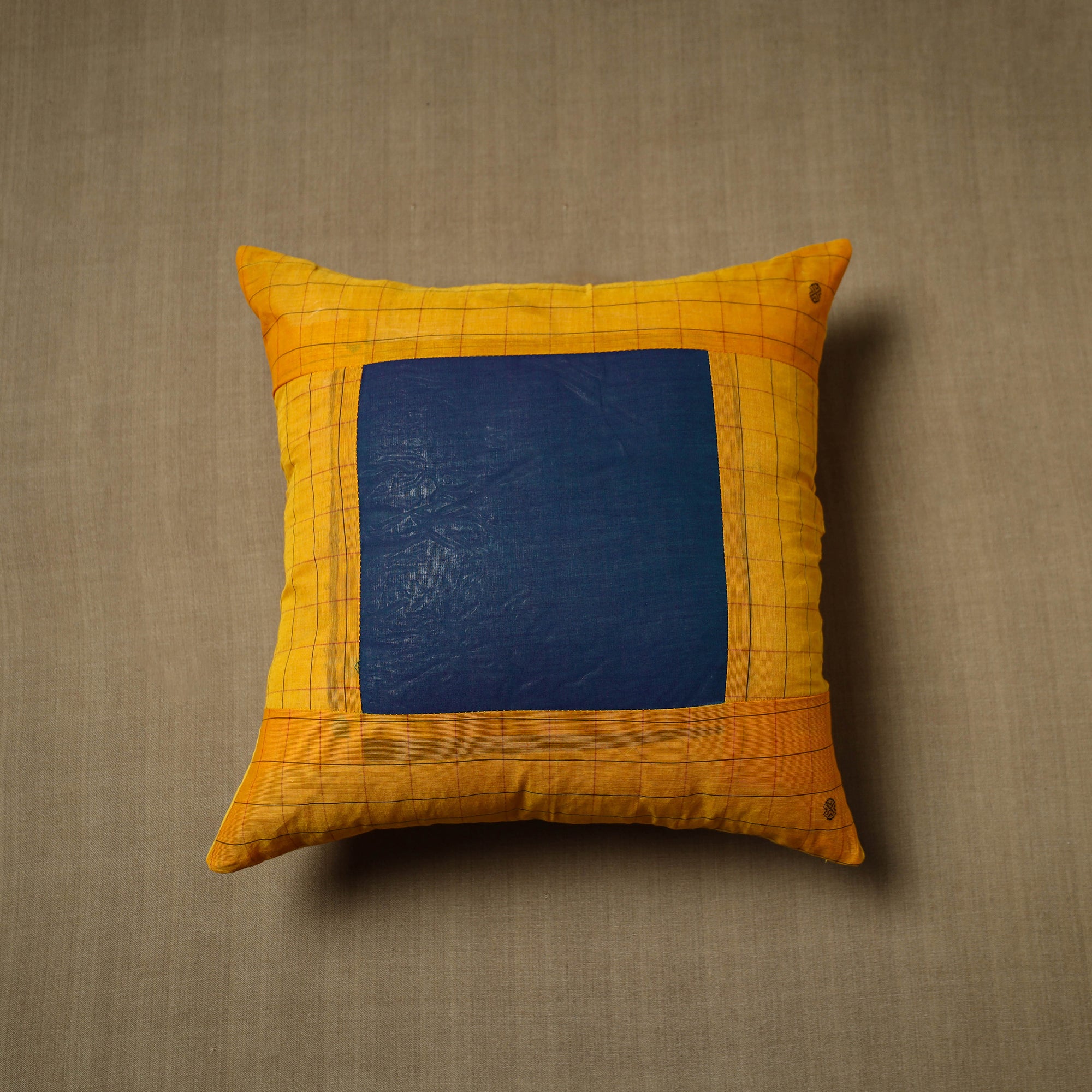 This exquisite yellow kanchipuram cushion cover handcrafted from cotton fabric.Each cover features patchwork that reflects the rich cultural heritage of kanchipuram. Perfect for adding a touch of elegance and charm to any room, this cushion cover blends durability with style.