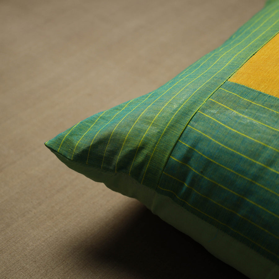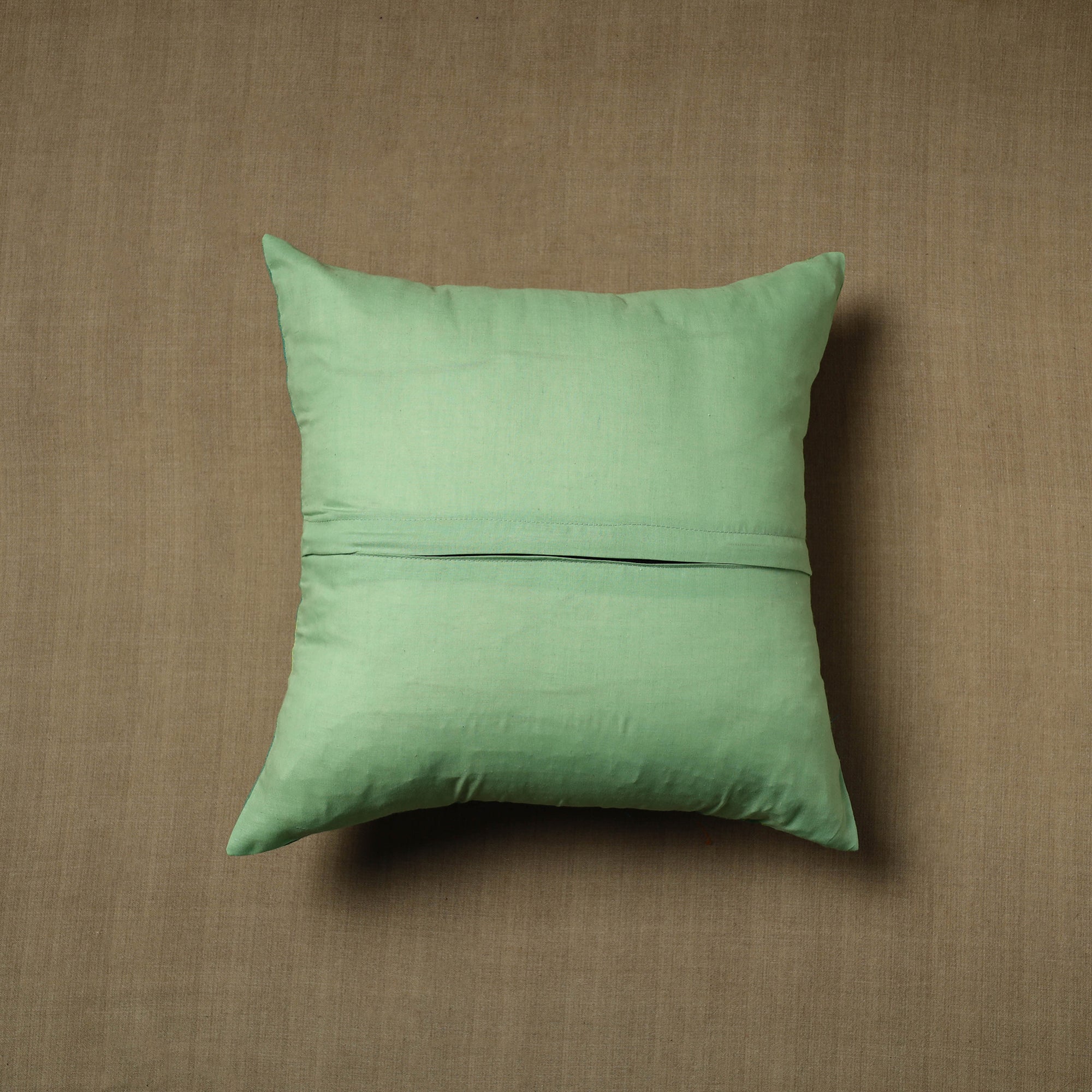 This exquisite green kanchipuram cushion cover handcrafted from cotton fabric.Each cover features patchwork that reflects the rich cultural heritage of kanchipuram. Perfect for adding a touch of elegance and charm to any room, this cushion cover blends durability with style.