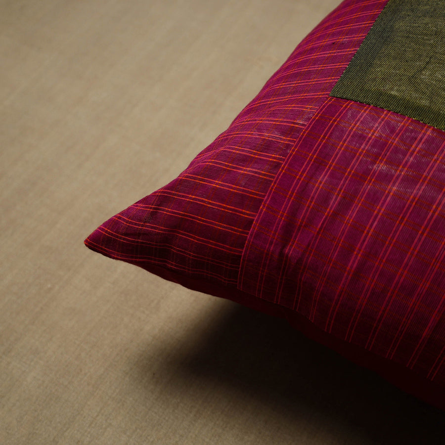 This exquisite dark pink kanchipuram cushion cover handcrafted from cotton fabric.Each cover features patchwork that reflects the rich cultural heritage of kanchipuram. Perfect for adding a touch of elegance and charm to any room, this cushion cover blends durability with style.