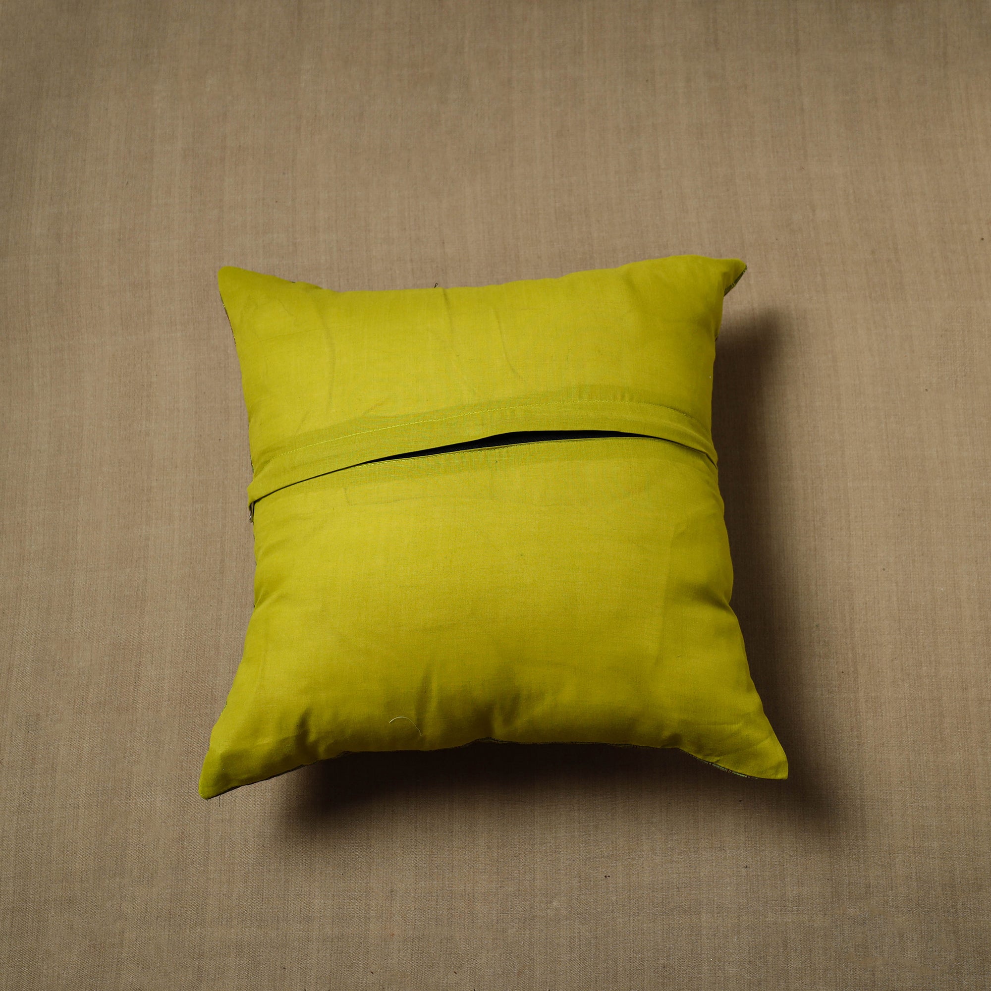This exquisite green kanchipuram cushion cover handcrafted from cotton fabric.Each cover features patchwork that reflects the rich cultural heritage of kanchipuram. Perfect for adding a touch of elegance and charm to any room, this cushion cover blends durability with style.