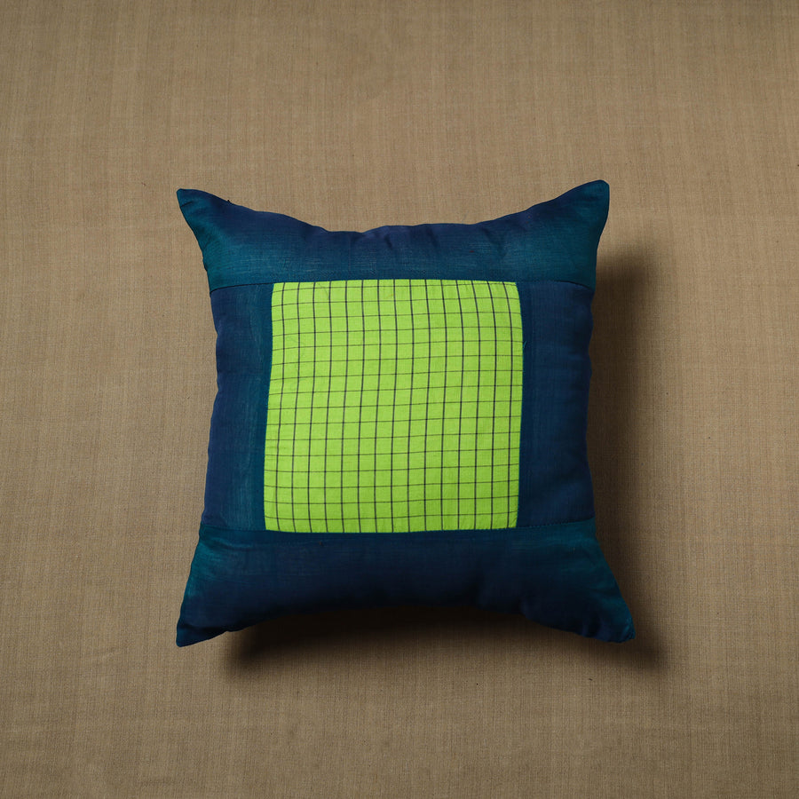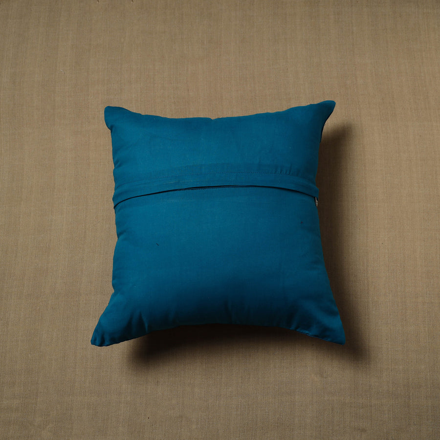 This exquisite blue kanchipuram cushion cover handcrafted from cotton fabric.Each cover features patchwork that reflects the rich cultural heritage of kanchipuram. Perfect for adding a touch of elegance and charm to any room, this cushion cover blends durability with style.
